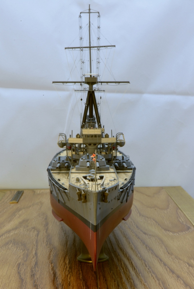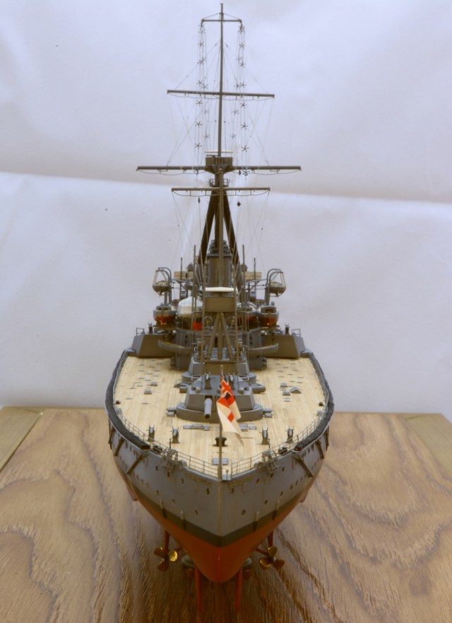 Есть конечно небольшие косячки: на фото 2 и 3 видно, что носовая мачта наклонена на нос, кормовая мачта на корму, видимо перетянут такелаж. На фото 11 и 13 "подчеркнуто" видна имхо немасштабная толщина лопастей гребных винтов. Хотя по винтам не уверен, может на винтах того времени лопасти были толстыми. Вон смотрю, на Дреде Чемпиона Макарычева лопасти примерно такие же.