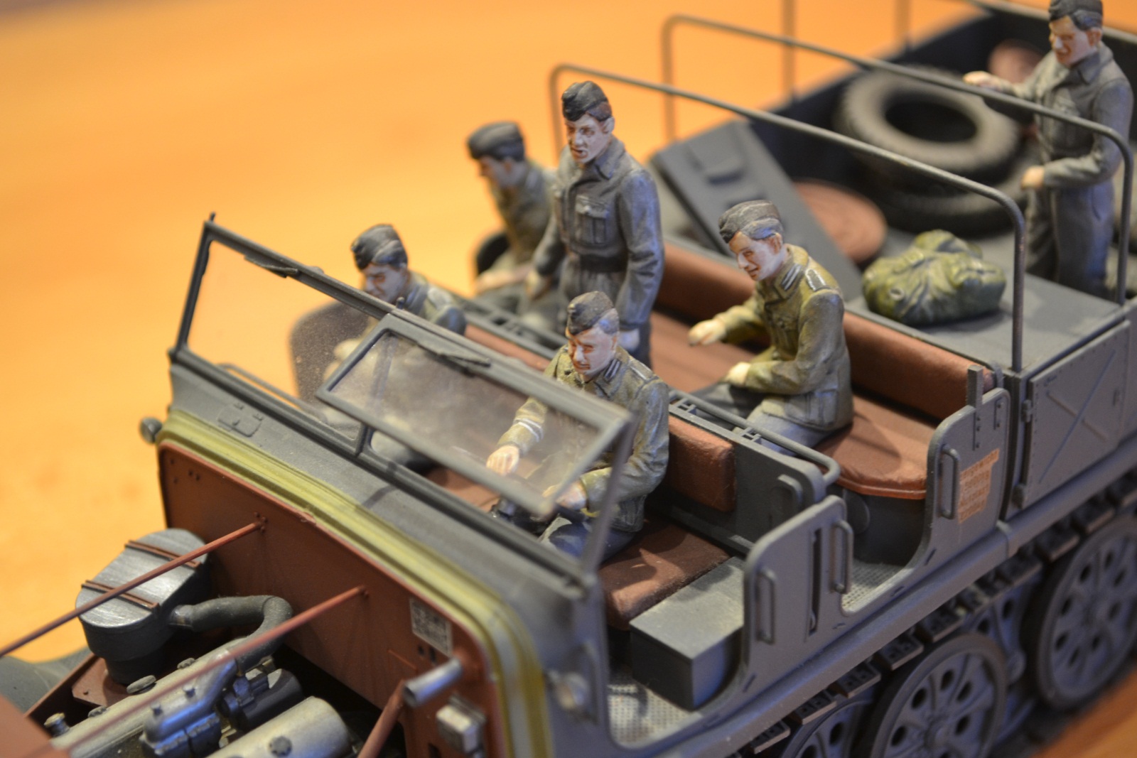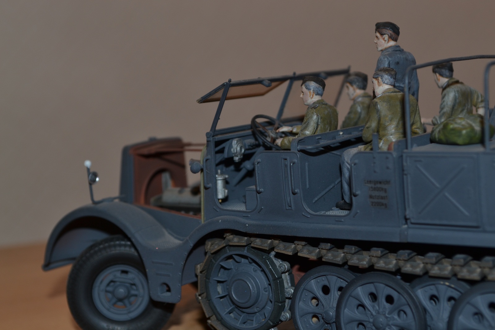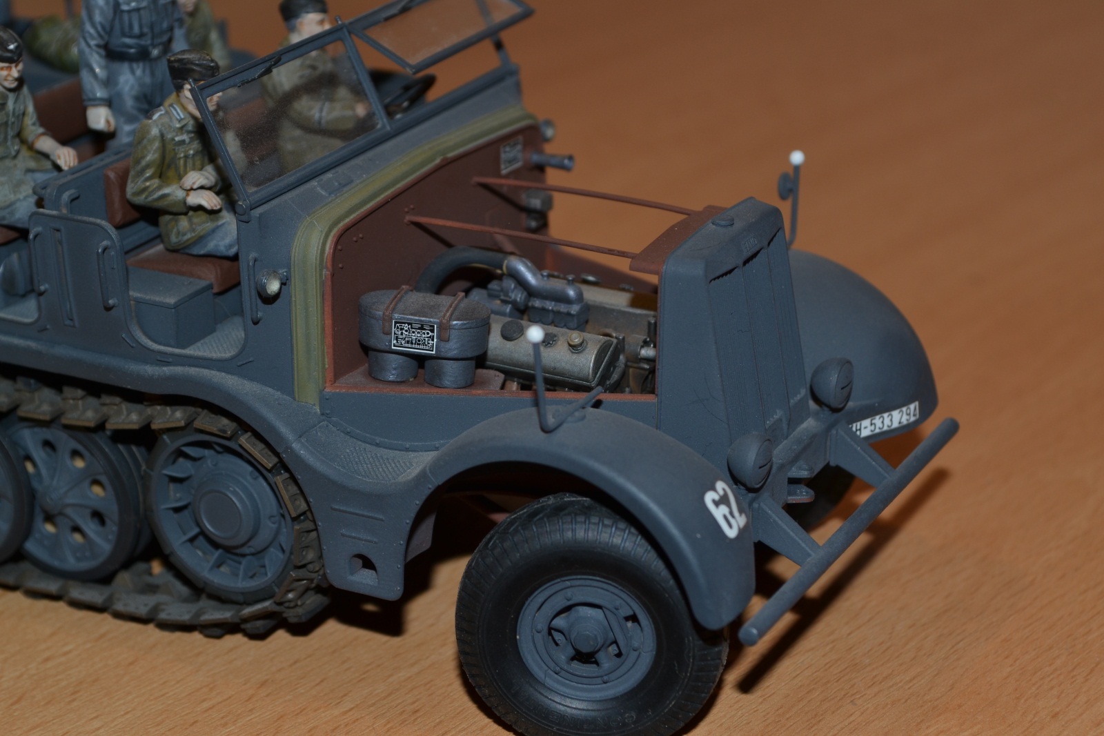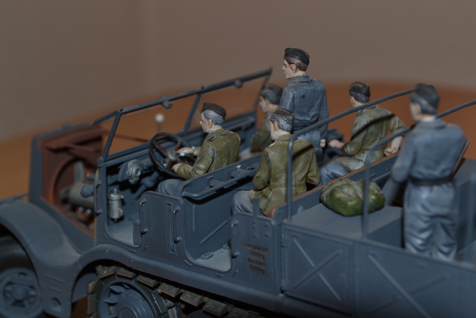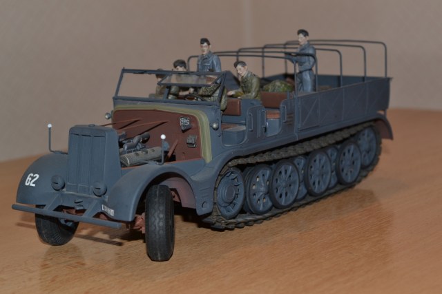 Представляю вашему вниманию модель крупнейшего полугусеничника Вермахта – FamoSd.Kfz.9. Полугусеничник с силой тяги в 18т мог с легкостью отбуксировать любой образец БТТ вплоть до Т-4 и перевозить при этом до 3 т. груза. На буксировку более тяжелых Пантер и Тигров требовалась упряжка от 2 до 4 таких машин, вот почему их роль как эвакуаторов после 1943 года стала падать. Машина выпускалась в 5 различных вариантах: