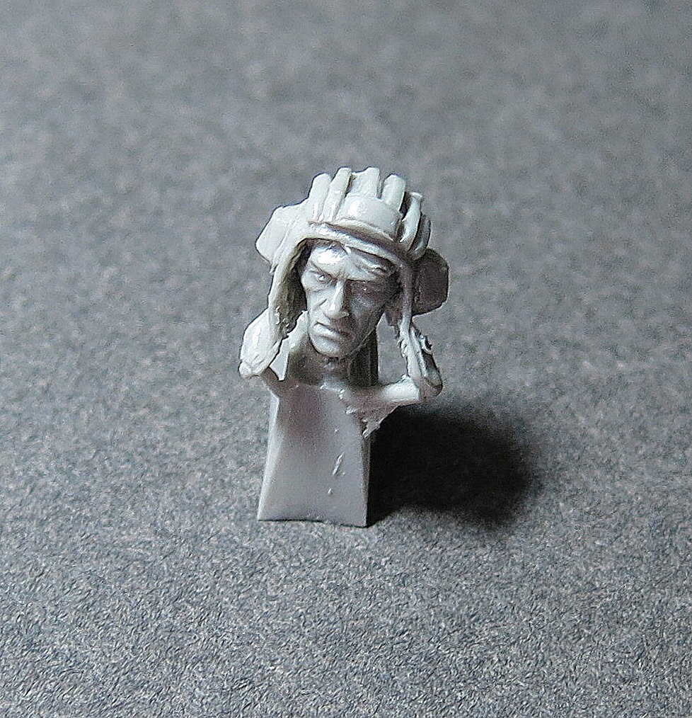 Как уже говорилось ранее - скульптура Сергея Травианского (он же Менелай) - выше всяких похвал. Отлично проработаны складки, ремень, подсумок. Очень качественно вышел шлемофон, как внутри, так и снаружи. В лице четко читаются грусть и усталость, перемешанные с яростью и ненавистью.