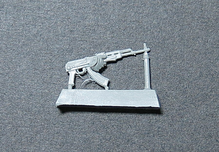 Теперь же о литье. Фигура не нова, и была "апдейтнута" - по видимому обновили мастер-фигуру или формы. Пристутствует легко устранимый облой, на колене и локте то ли пузырь-недолив, то ли рваная форма.