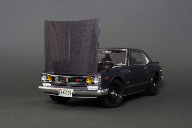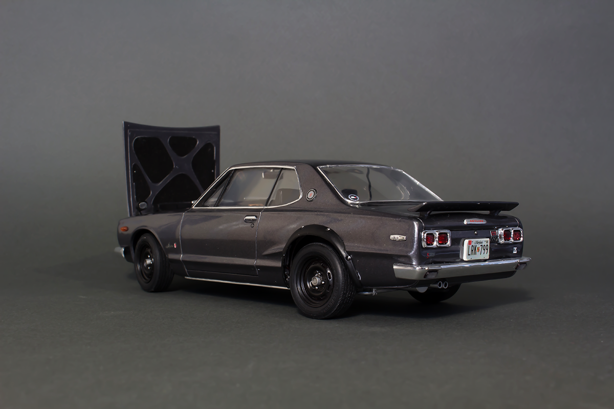 Публикую на всеобщее обозрение свою модель Nissan Skyline 2000 GT-R от Тamiya. Проект не новый, просто всё никак не доходили руки до фотосессии. Долго не мог поймать глубину резкости на новом фотоаппарате, вроде бы удалось.