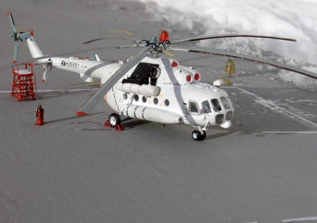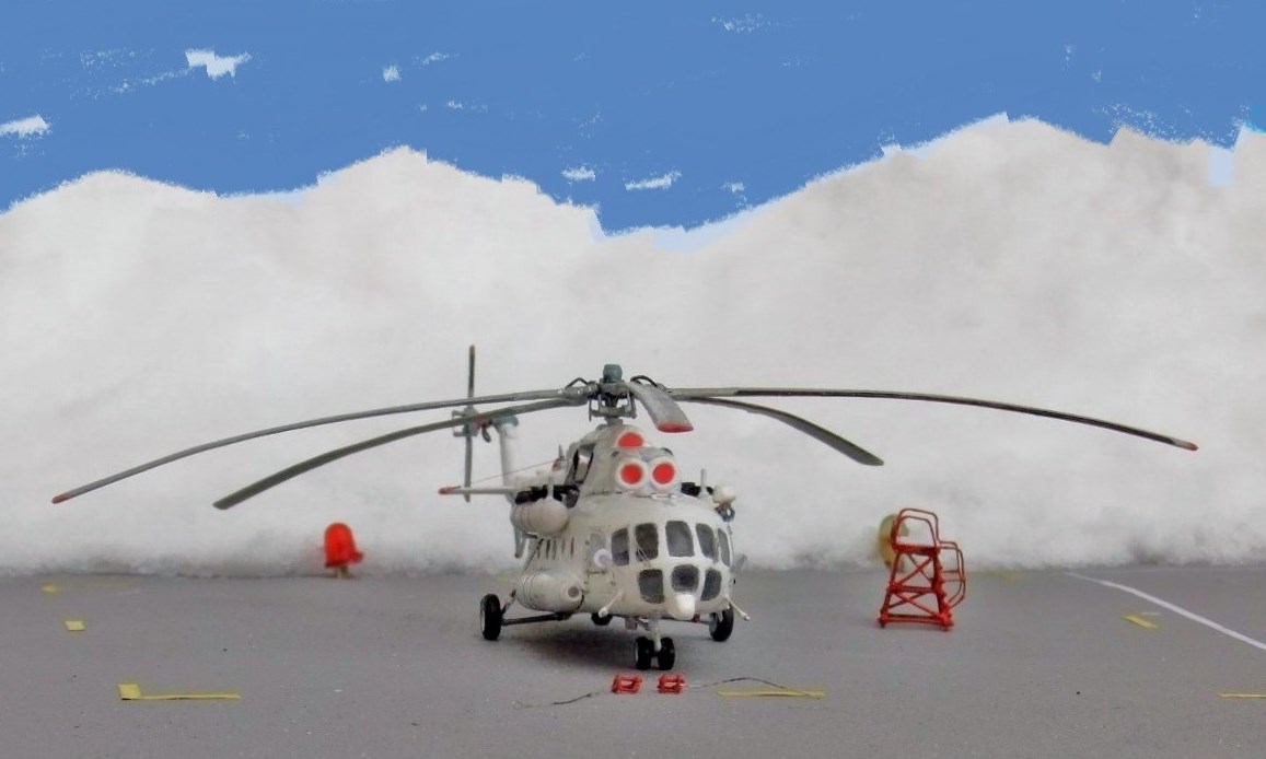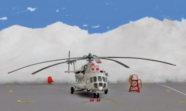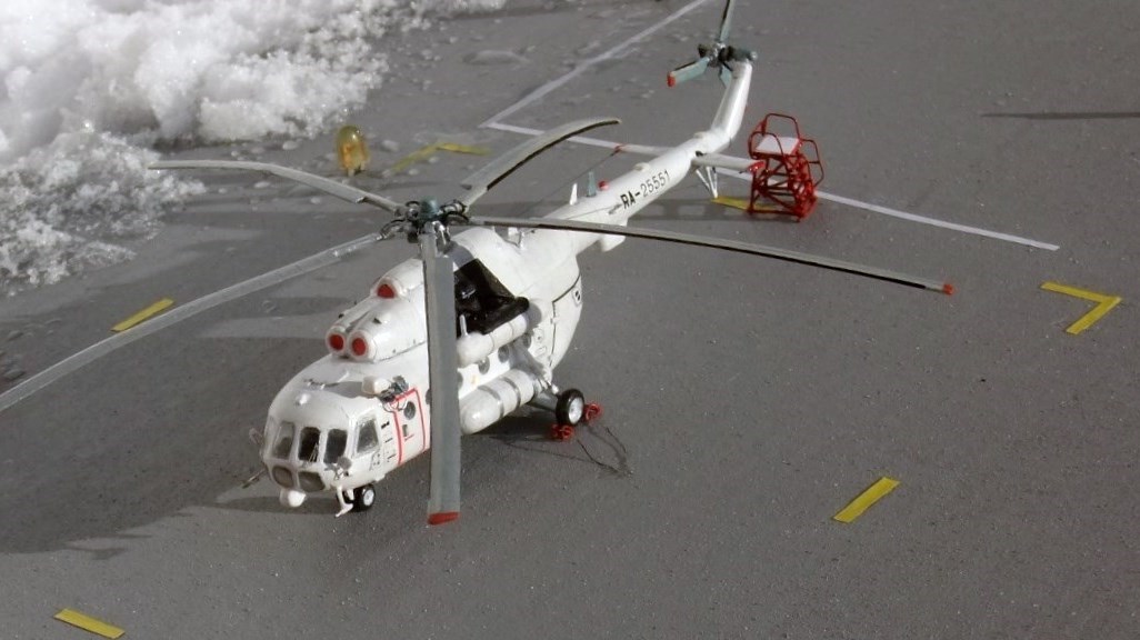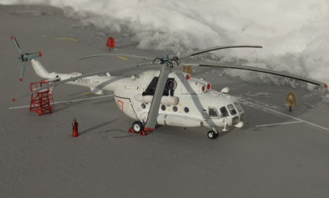 Всеми знаменитая вертушка МИ-8 думаю в техническом описании не нуждается, борт №25551 Utair-овских авиалиний под маркой ми-8тв, не хотелось делать аэрофлотовскую ливрею, долго думав остановился на этом борту приблизив его к реальному времени, декали в наборе были аэрофлот ссср, поэтому номера, и прочие нанесения от остатков старых дек.