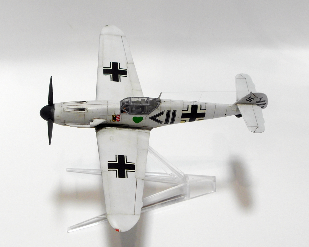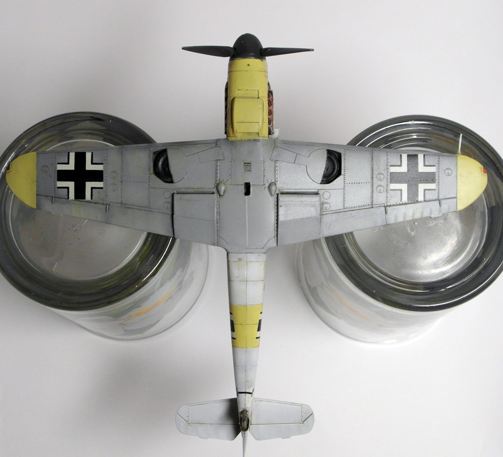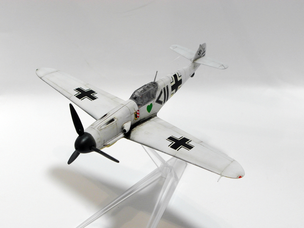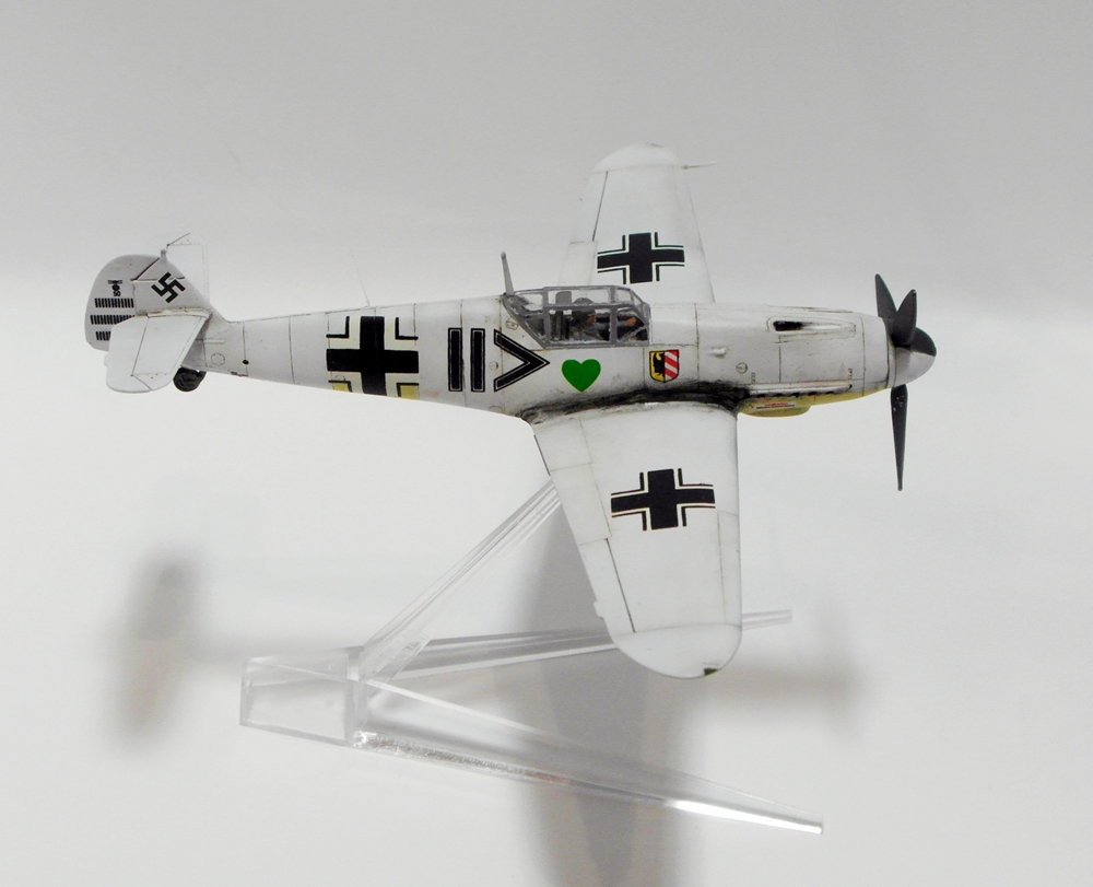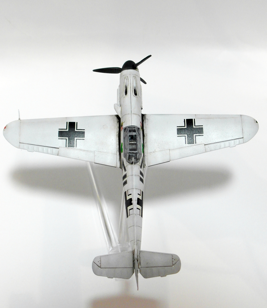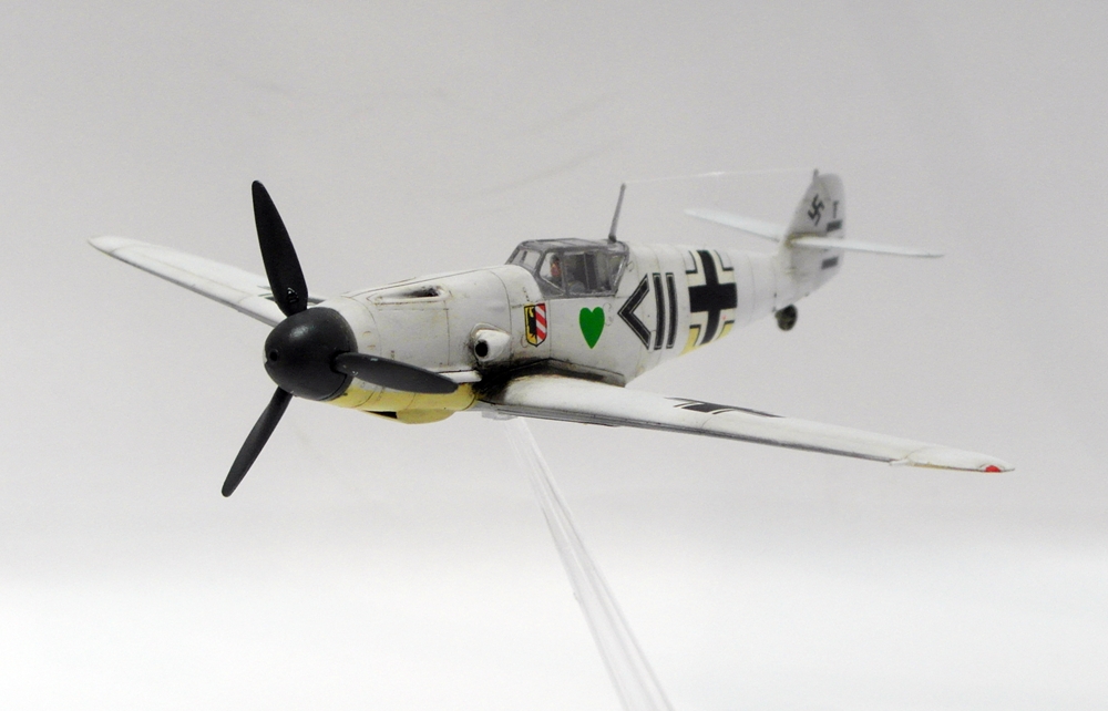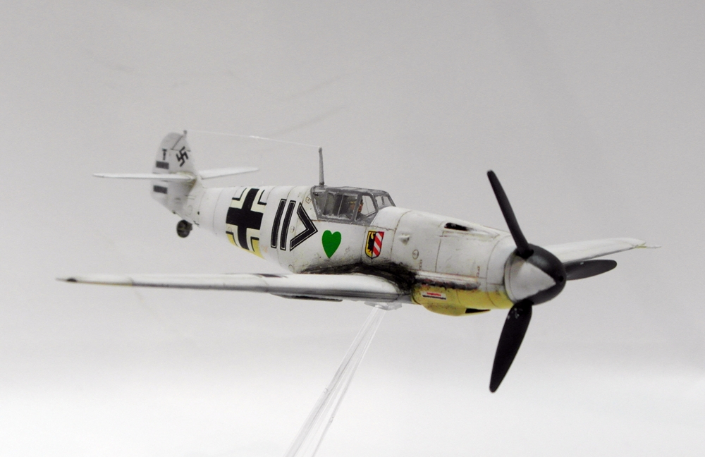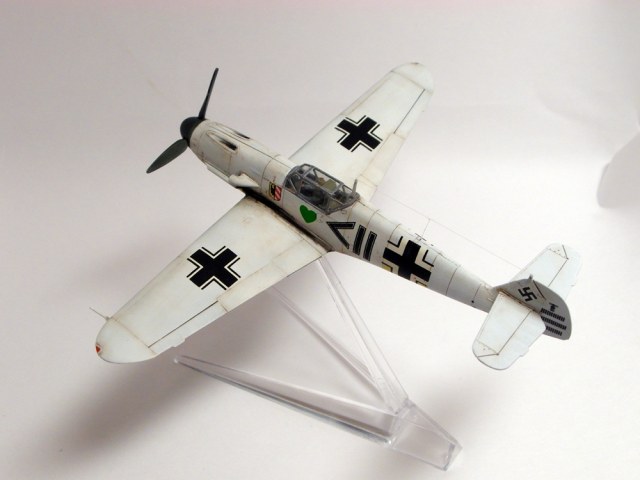 Сергей, не посчитайте занудой, но честно говоря не понимаю - зачем делать менее смотрибельный вариант с убранным шасси, если с выпущенным и проще и красивее? Если есть желание поставить модель на подставку, то ведь можно и с шасси... На взлете, типа. А еще класснее показать момент уборки-выпуска. Ноги у Мессера ходят не синхронно, можно их изобразить под разными углами. Сам я не любитель насаживать самолеты на подставки. Есть в этом какая то сувенирность, условность и фальшь - летящий самолет с неподвижным винтом, без признаков работы двигателя. Он не смотрится летящим, он смотрится просто памятником на подставке. Нужно либо диск ометаемый лопастями как то изображать, типа из оргстекла, либо встраивать в модель электромоторчик. Ну и конечно каким то образом показать выхлоп. Ежели модель в момент взлета - прямо языки пламени из патрубков...