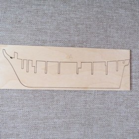 Хочу предупредить шпангоуты нессимметричны, киль винтом. Планширь делал из листа шпона, (согнуть так рейку и не смог) из литья оставил фигурку и надпись на корме, пушки пришлось ставить другие, мне попался брак. Нитки брал из журнала(патворк). Это мой первый набор ну и первый парусник из дерева