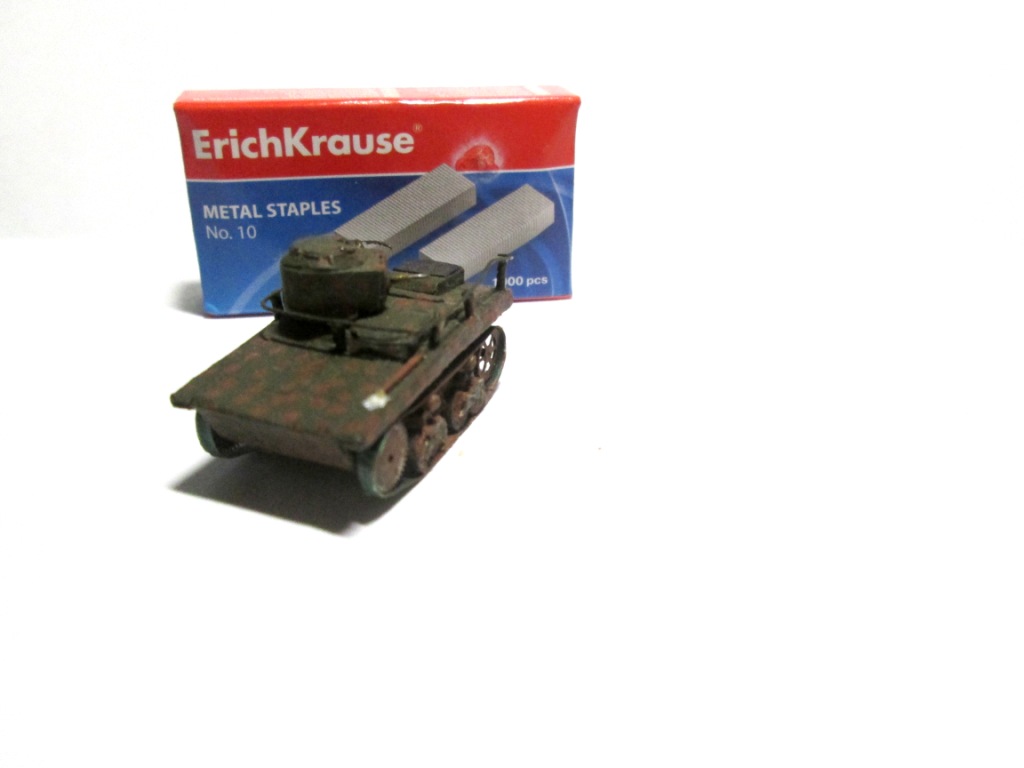 лысые полоски вместо гусениц, невнятные детали ходовой, явные ошибки в геометрии при сборке, слишком грубая для выбранного масштаба окраска. в галлерею я эту работу пропустить не могу
