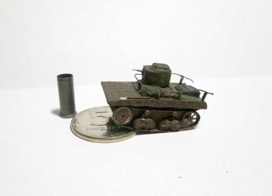 Модель делалась из бумаги в период зимних каникул 2013 года. Использовал шестерёнки от часов, гитарную струну "РЕ" (пулемёт, пружины подвески), стальную проволоку из этой же струны (антенна). Окраска акрил "Звезда", кисть.