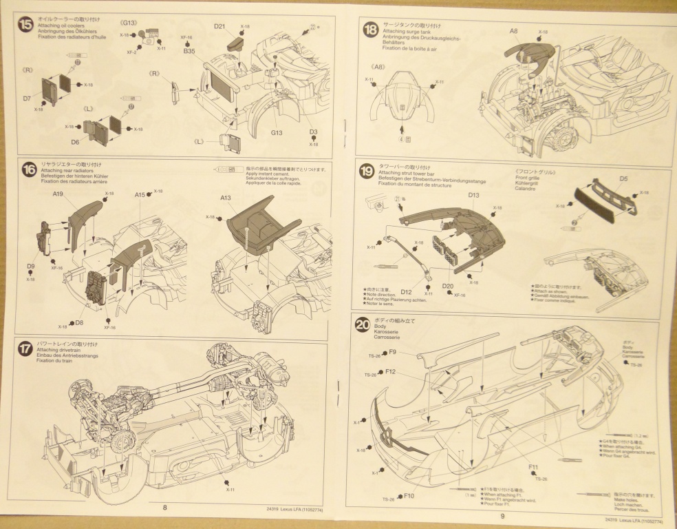Приветствую Вас уважаемые Коропчане. Представляю Вашему вниманию творение фирмы TAMIYAавтомобиль LEXUSLFA. В коробке имеется понятная и подробная инструкция по сборке модели, сам, собственно, салон, 5 литников чёрного и серого цвета,2 литника хром, травление, один литник с прозрачными деталями, листочек с декалями и маской, ну и разноразмерная резина. Всё это дело запаяно в пакетики и аккуратно уложено. Данный набор нам предлагает праворукий вариант, к сожалению, но зато высоко продетализированный двигатель, выхлопную систему и ходовую часть. При облоя и следов от толкателей не обнаружено, нет, они есть, но маненько-маненько :) не смертельно . В целом набор очень качественный и интересный. Всем спасибо за внимание. Приятного просмотра.