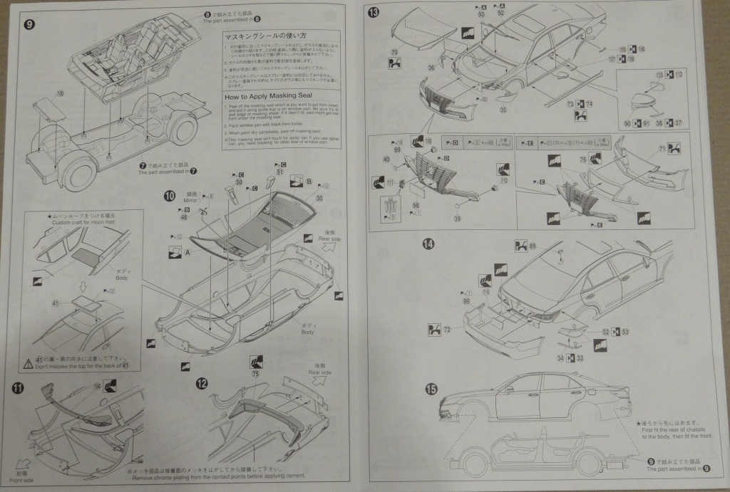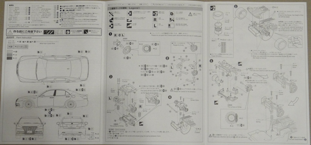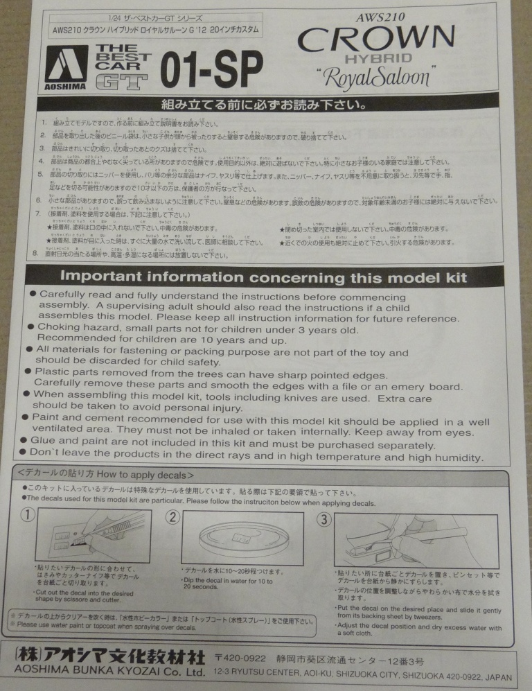 Приветствую Вас уважаемые Коропчане. Представляю Вашему вниманию творение фирмы AOSHIMAавтомобиль TOYOTACROWNAWS210 RoyalSaloon. В коробке имеется понятная и подробная инструкция по сборке модели, 6 литников черного и кремового цвета, 2 литника прозрачного пластика, 6 литников хром, салон, днище, пружинки и болтики ,резина и листочек дкалей. Всё это дело запаяно в пакетики и аккуратно уложено. При осмотре облоя и прочих косяков, которые могут испортить настроение, не обнаружено! Выхлопная система вылита вместе с днищем и не смотря на то, что капот крепится отдельно, функция открывающегося капота отсутствует, т.к. двигателя НЕТ :( Но зато хорошо исполнена детализация салона и на ванночке остекленения, на крыше, имеютя солцезащитные козырьки и освещение салона. А так же нам предлагают рабочую подвеску! В целом набор хороший и интересный. Всем спасибо за внимание. Приятного просмотра.