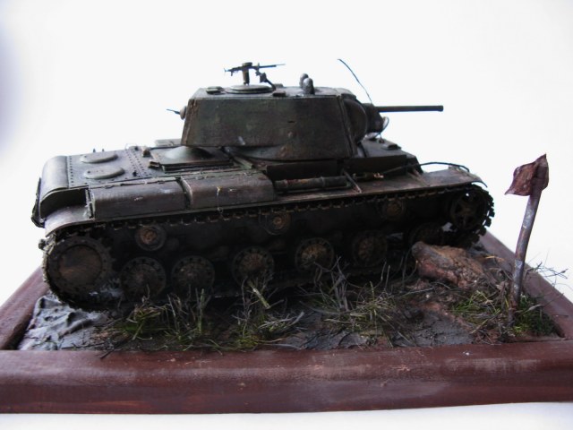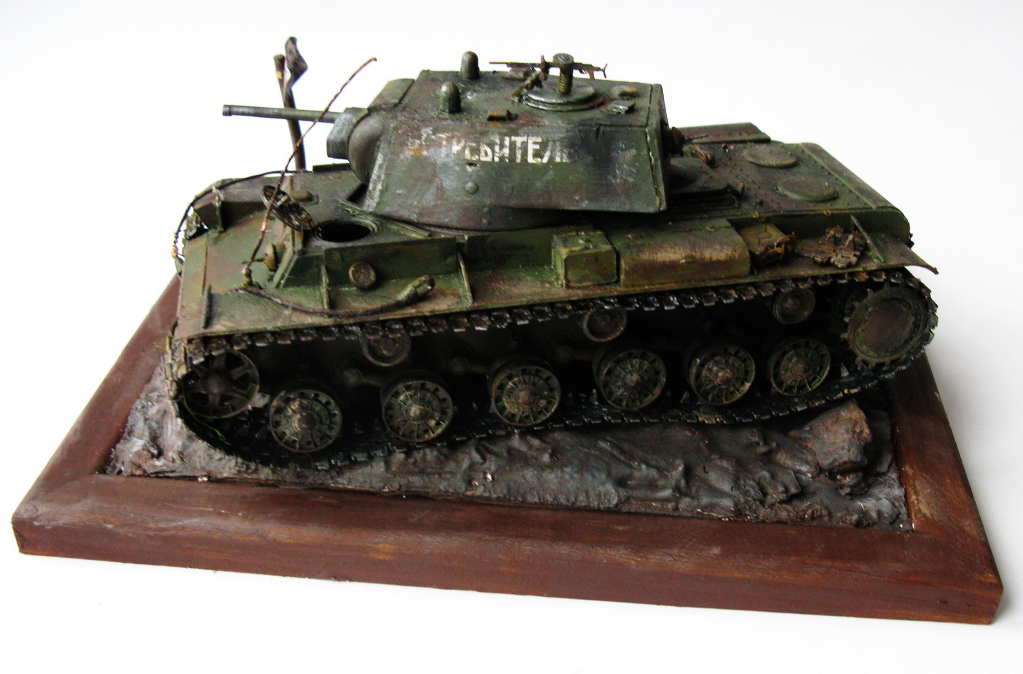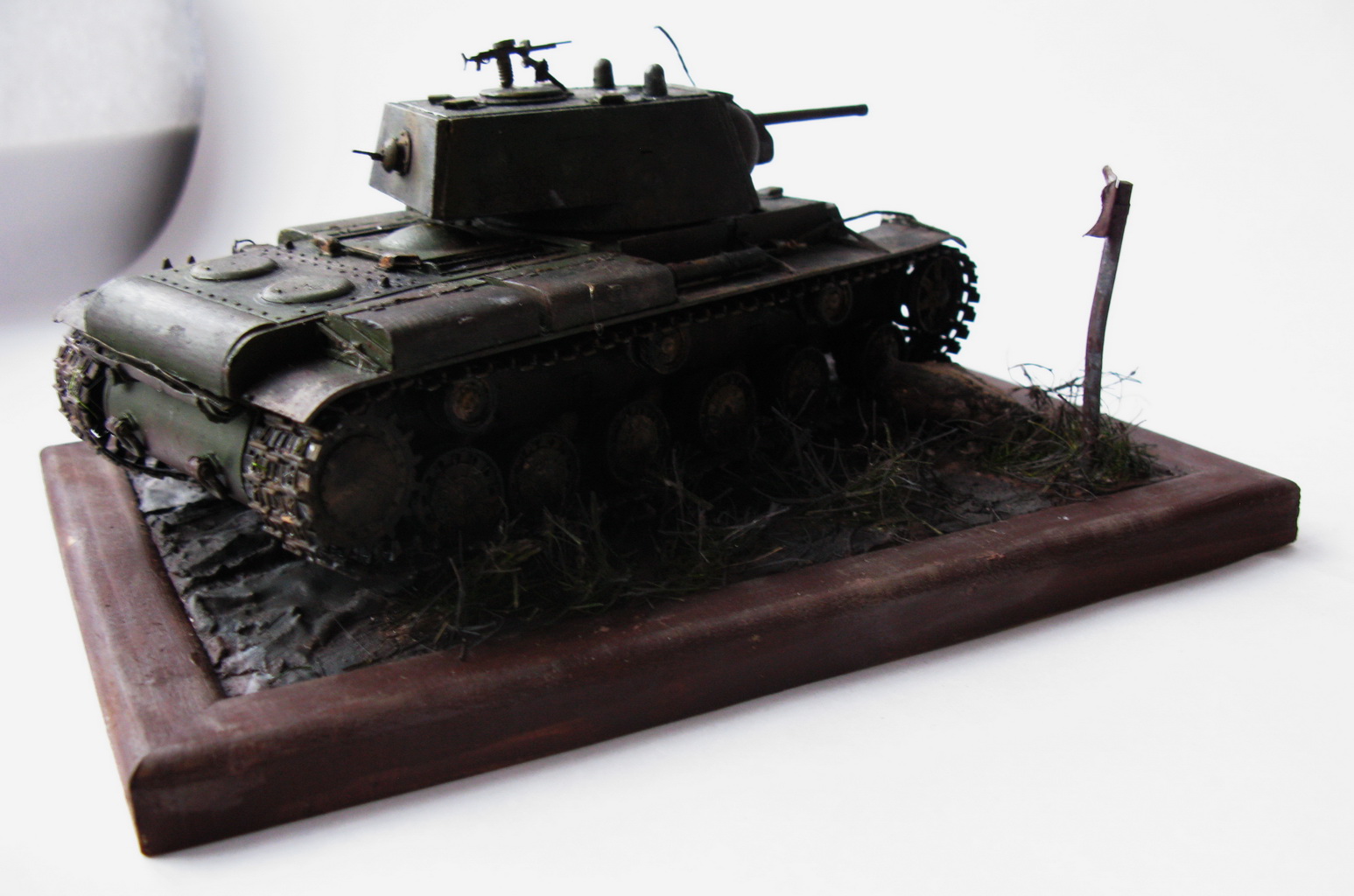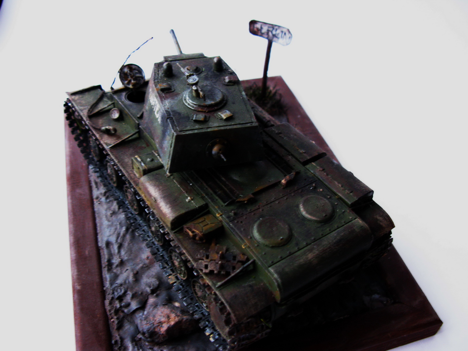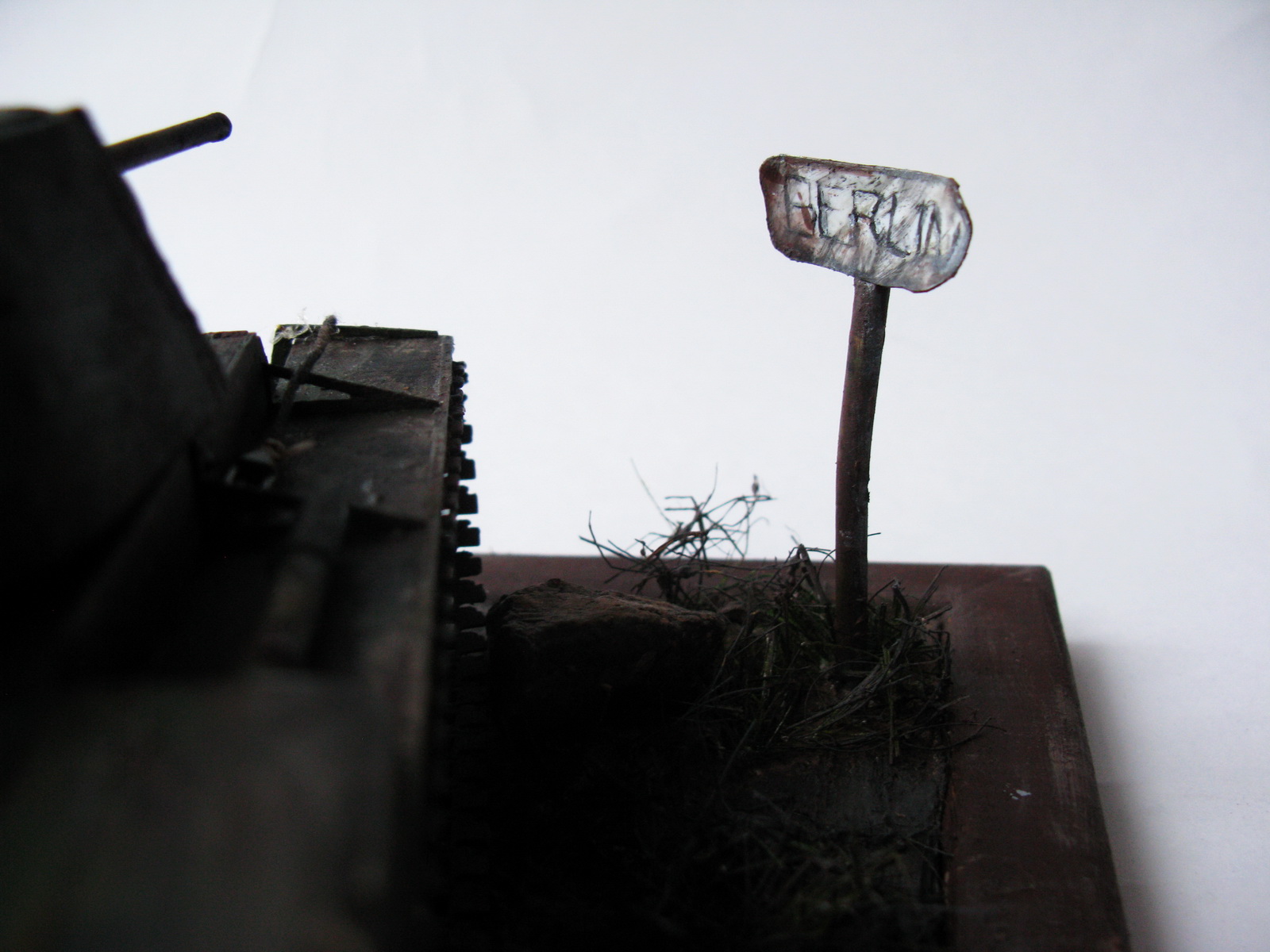 ...Не буду сейчас говорить о мат.части и т.д. и т.п. этой диорамы-виньетки,но могу сказать со всей определённостью,что ни один КВ или КВ-2 не дошёл до Берлина.Разве что,если на указателе написать расстояние в тысячу-другую километров.Если я ошибаюсь-поправьте фото военной хроники.