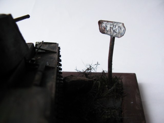 Подставка: 3 листа картона, фоторамка, гипс, два камешка и сезаль. Указатель - стаканчик от сметаны, пластиковый литник и литник от ФТД. Покраска - Звезда и кое-где обычный акрил "Ладога".