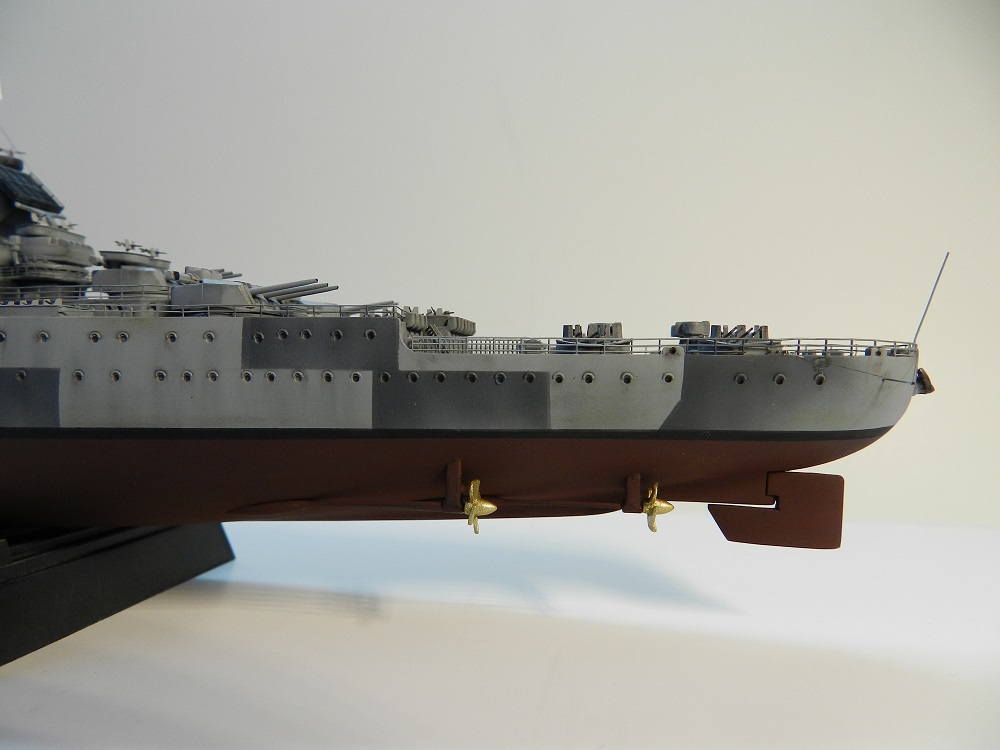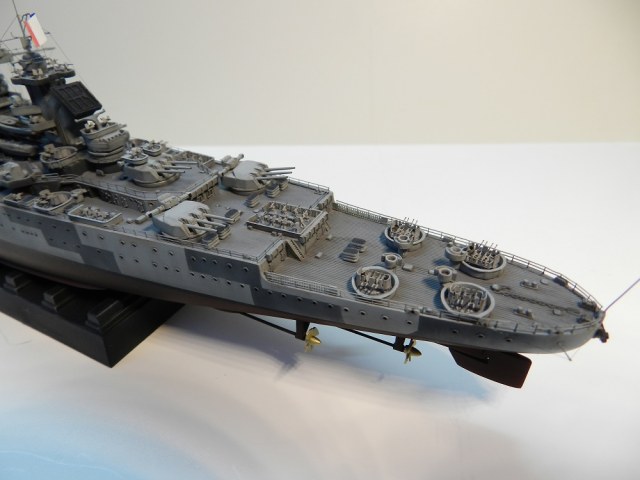 что не понравилось: антенны, немного неровно кдп встали на надстройке носовой, винты толстоваты, труба не высверлена, прожекторы носовые страшноваты, цепи не травленые (?), весла из шлюпок умыкнули...