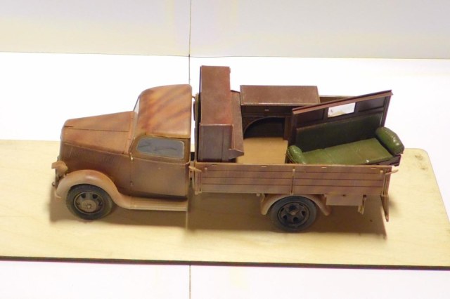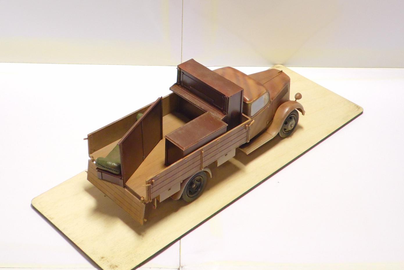 Стандартный ИСМовский Опель, в кузов добавил самодельную мебелишку. После фотографирования заметил что отпала ручка на левой двери, уже исправил.
