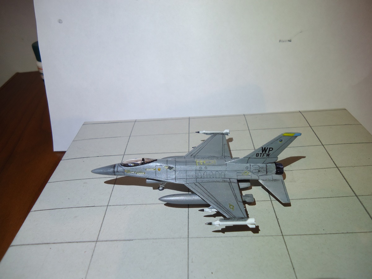 Вот, доделал ф-16 в 144 масштабе. Вообще последнюю модель собирал лет 15 назад. Набор попался ужасный, стыкуемость очень плохая была. Нос вообще похоже от другого самолета, вылепил из автомобильной шпаклевки. Красил звездой, кистью.Может хоть на песочницу потянет.