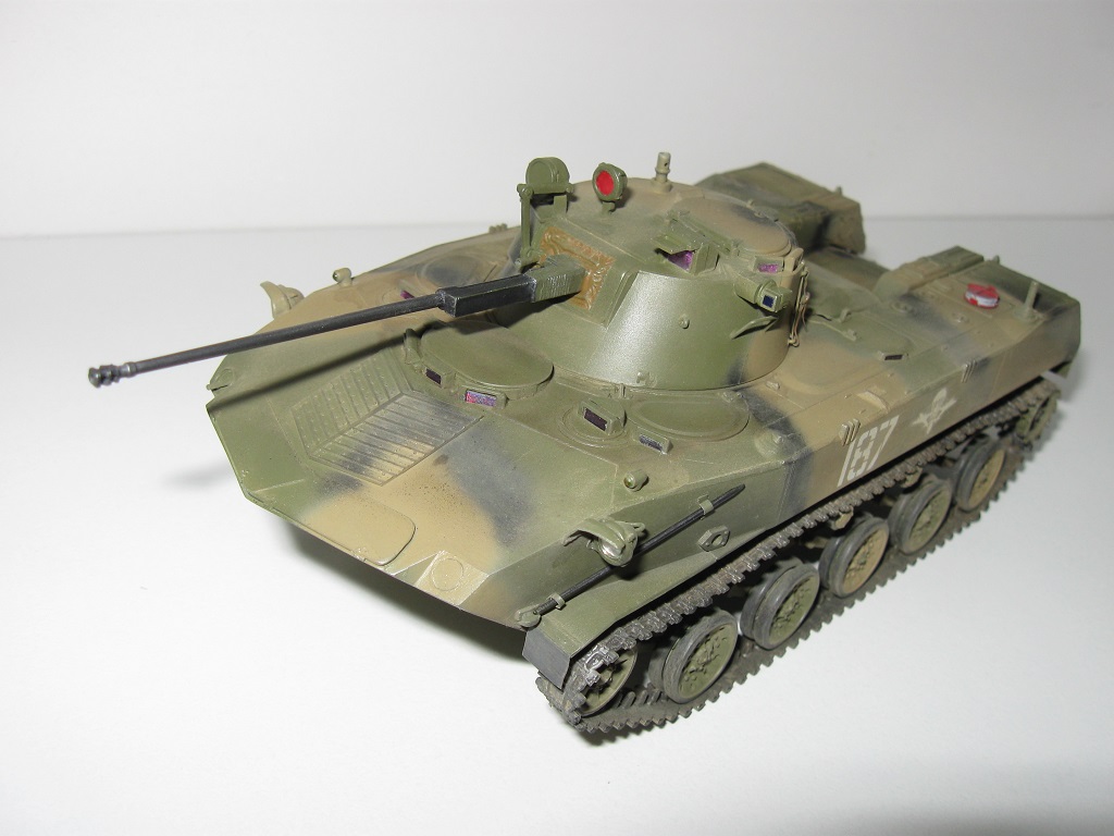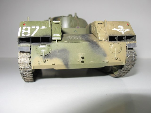 Симпатично. Из недочетов: Стекло луны должно быть черным, пулеметы почему-то зеленые, прибор командира с щелью, антенный ввод обломаный. Звездовские катки с щелями не украшают модель. Перекошенные выхлопы тоже красоты не добавляют. Габариты накрашены не аккуратно.
