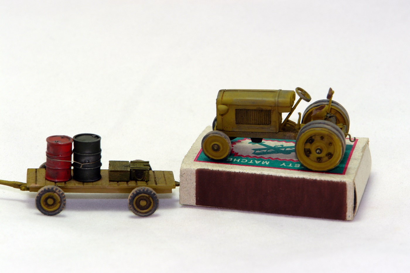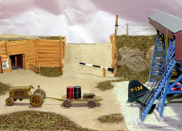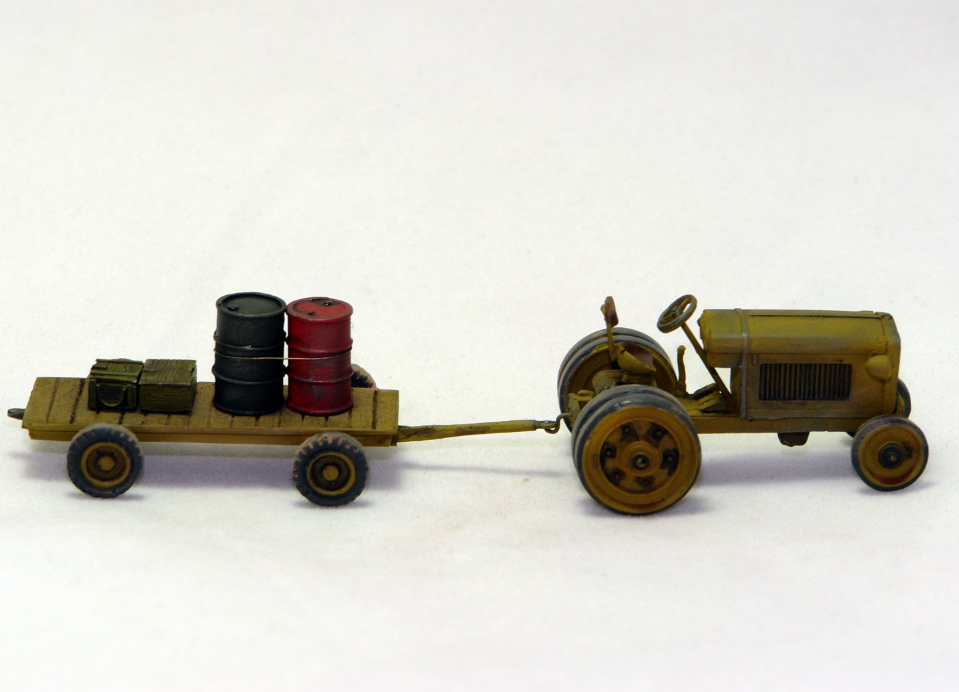 Очень понравился тракторишко. Хорошо смотрится и отдельно и в диораме. Вот только у тележки левое переднее колесо предательски висит.