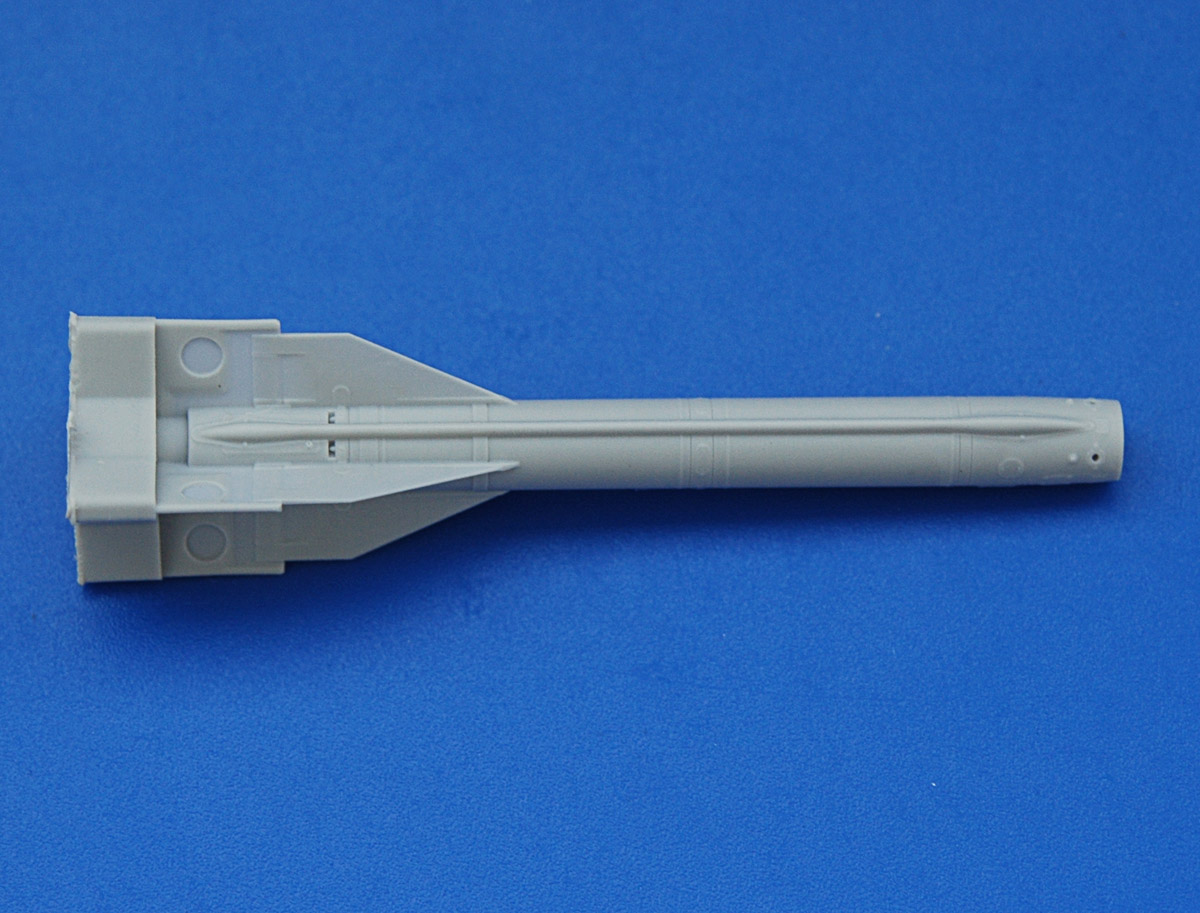 В очередной раз не могу не отметить прекрасную деталировку и высокое качество. Ракета отлита в одну деталь вместе с консолями крыльев. Отдельными литниками даны АПУ и хвостовые засти с характерными накладками. Основное отличие от ранее выпущенного набора - литник с головной частью ракеты.