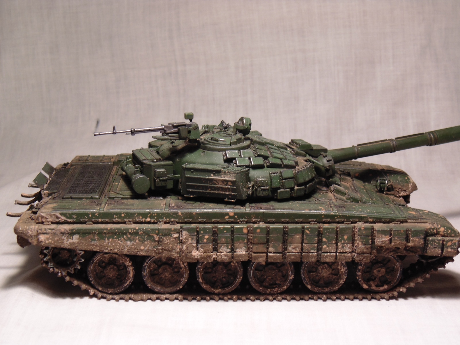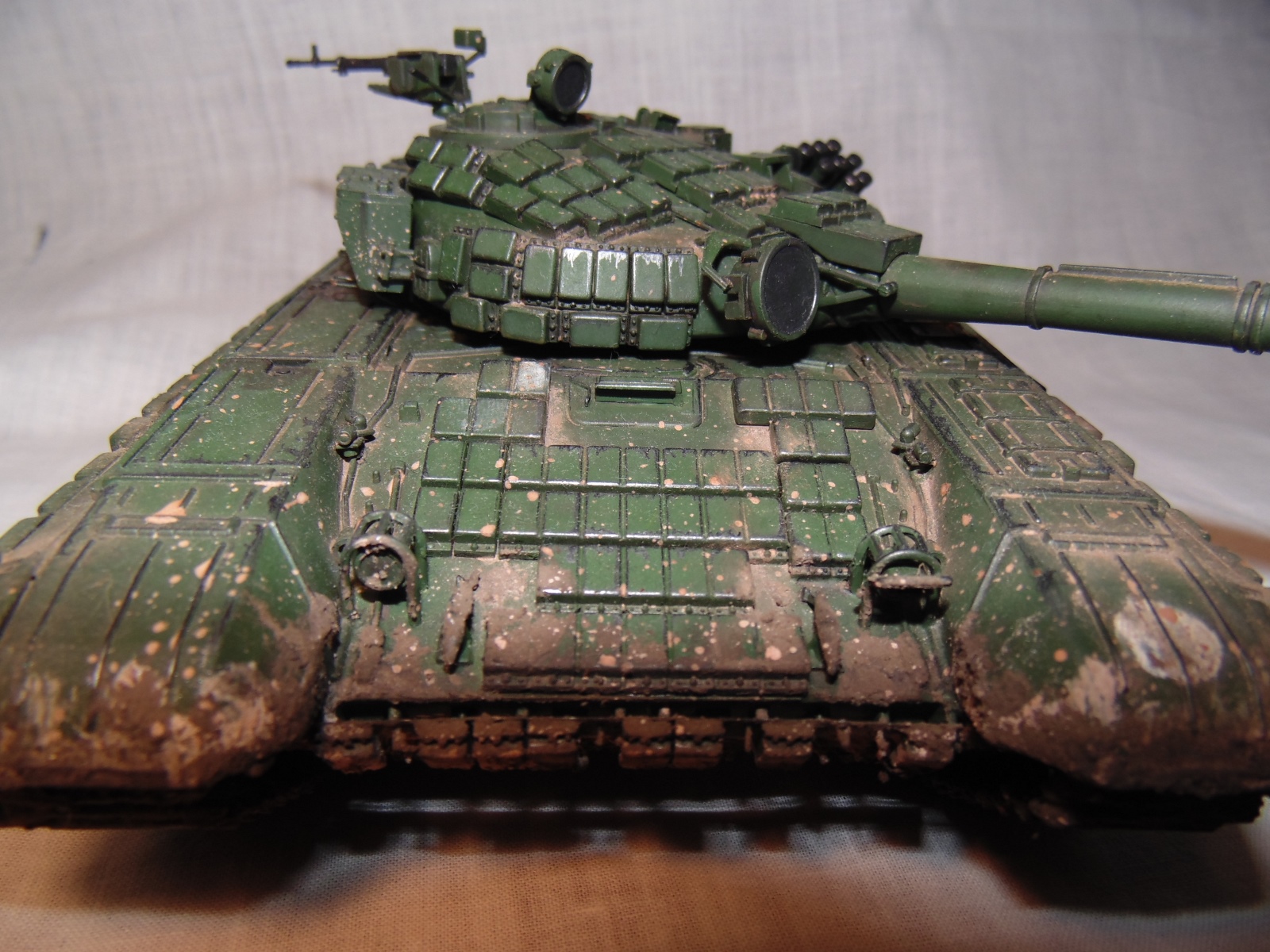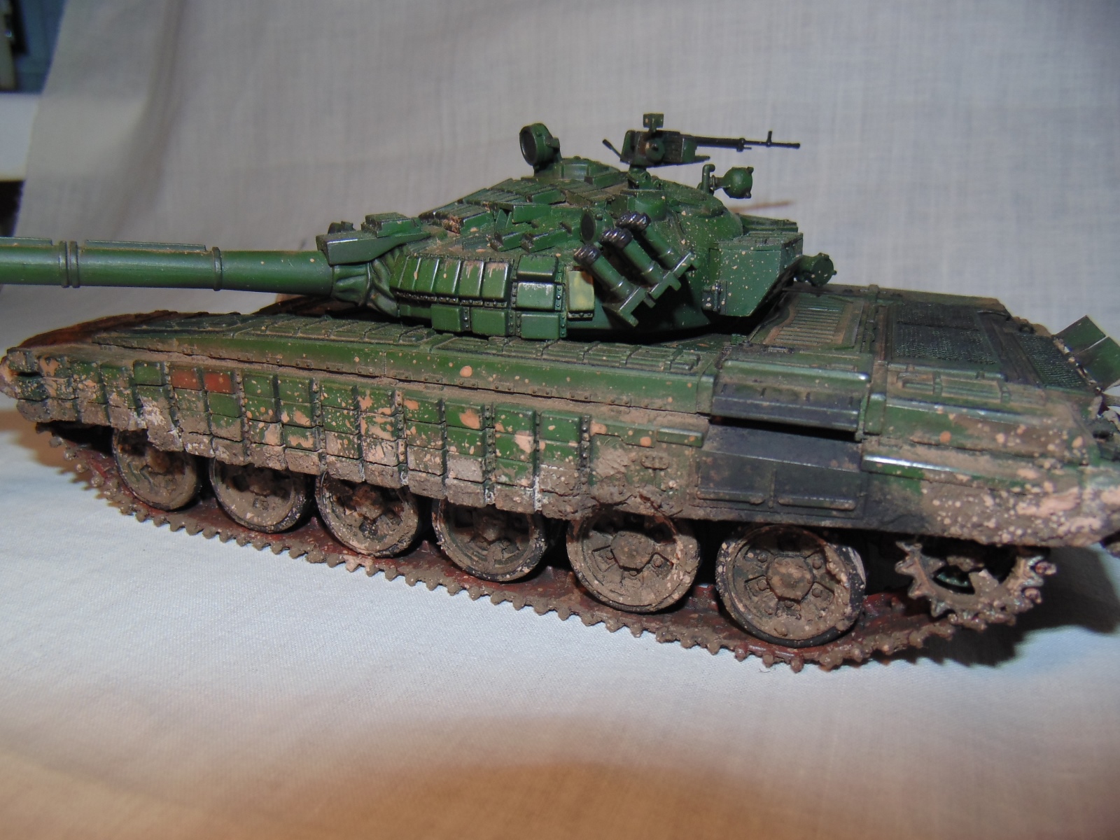 Получился довольно таки эффектный танк, только что побывавший в болте или же выбравшийся из обильной грязи.
