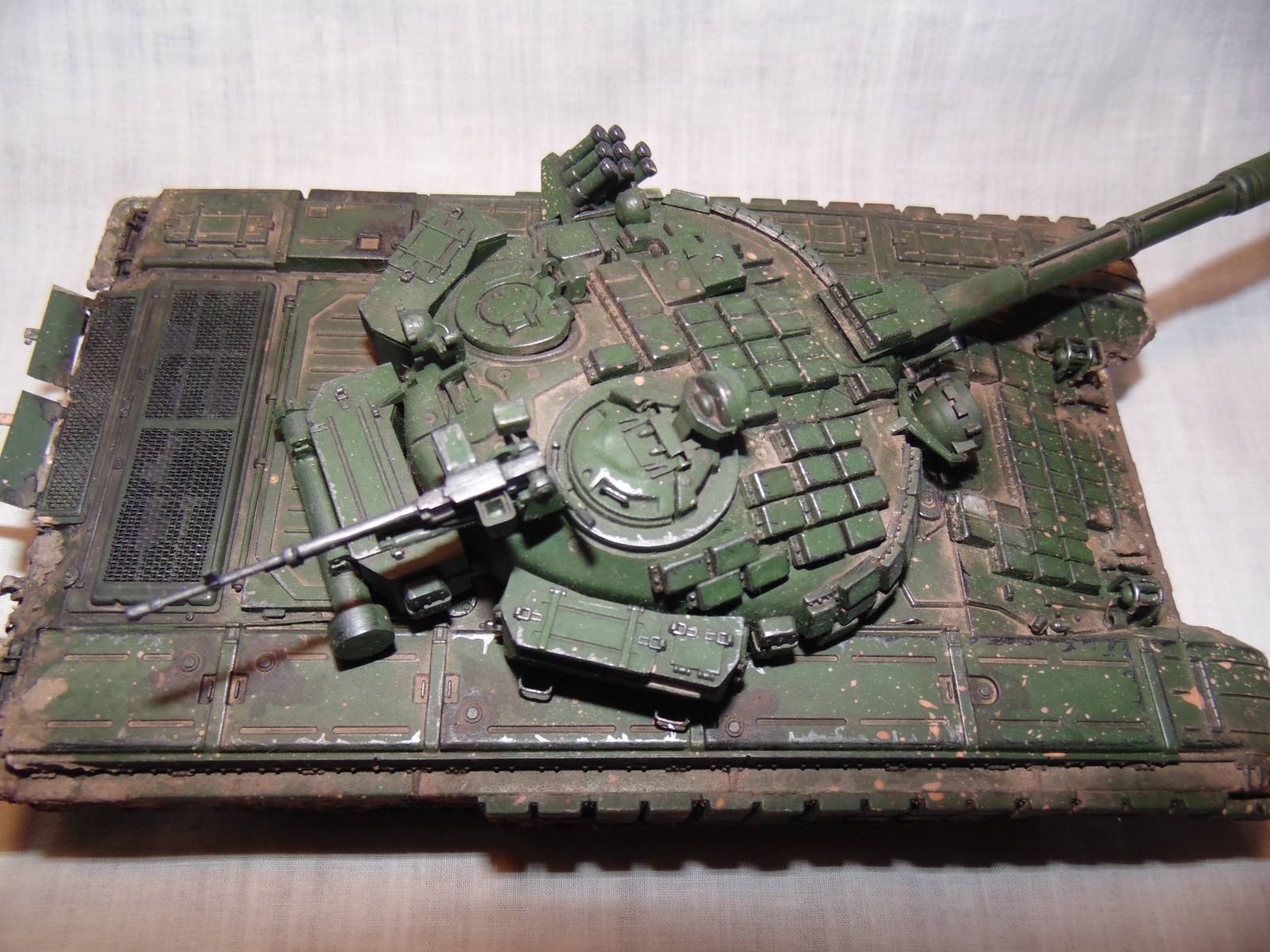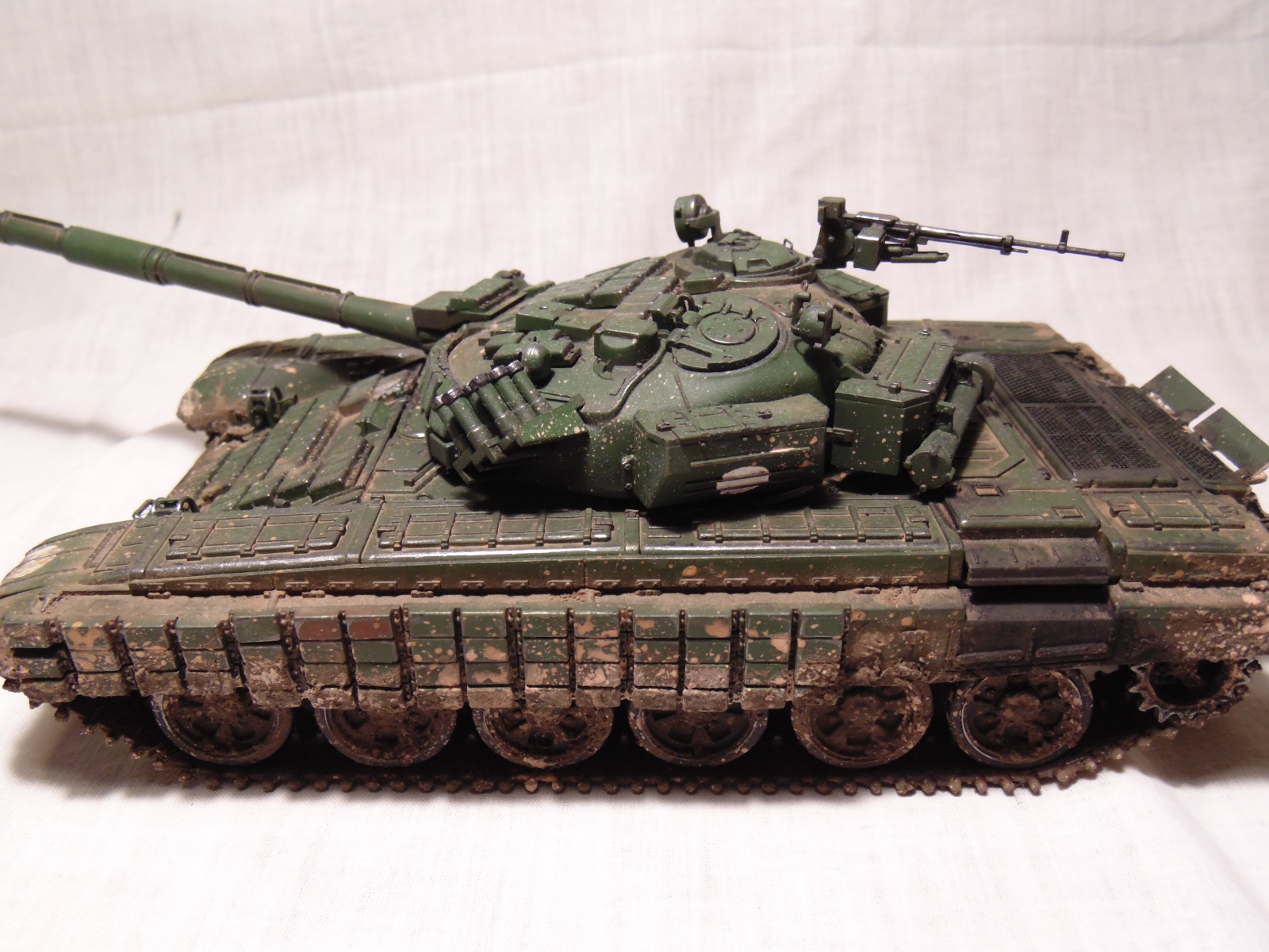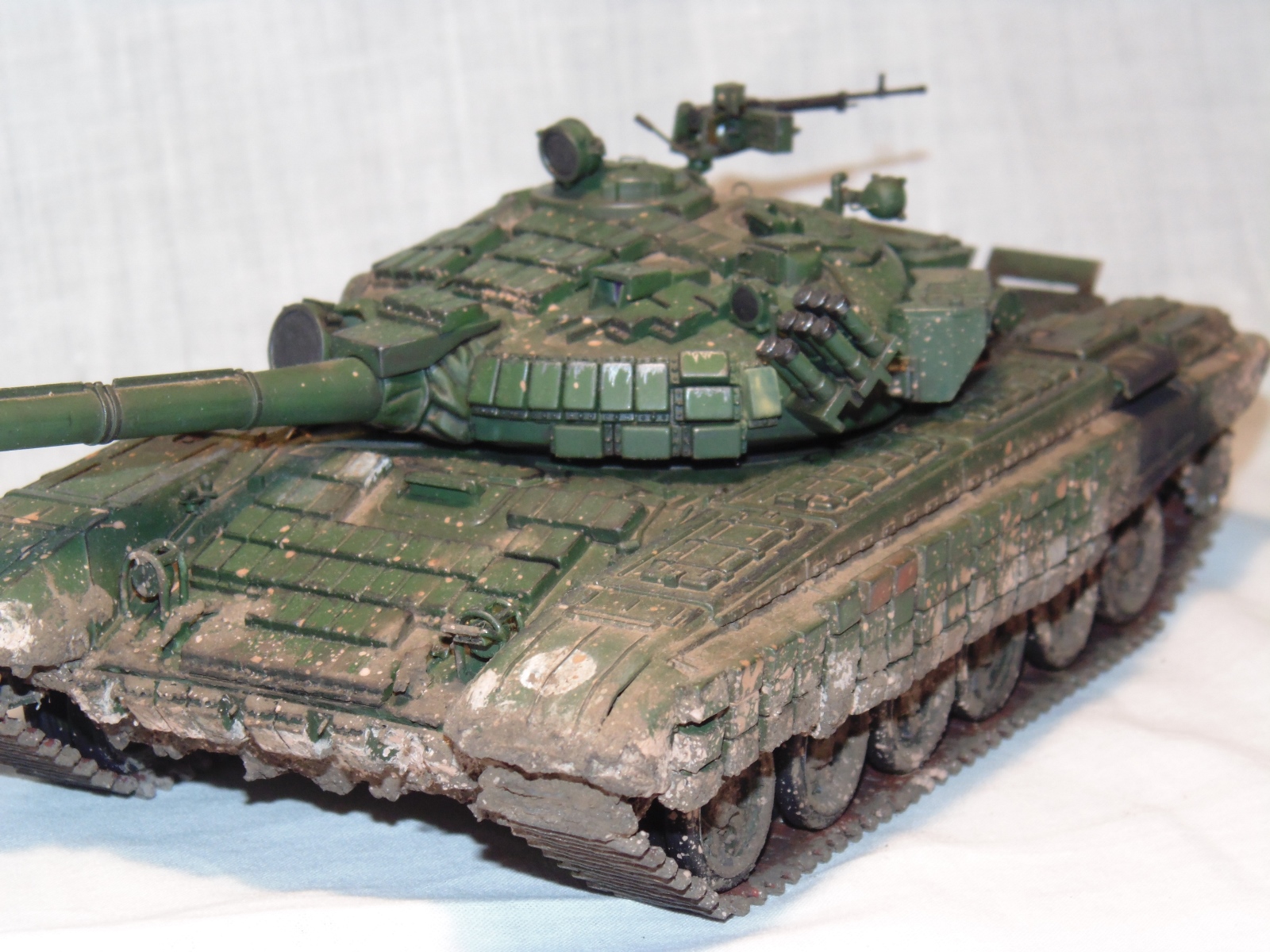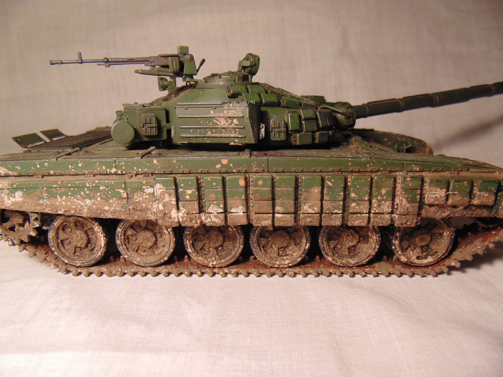 Получился довольно таки эффектный танк, только что побывавший в болте или же выбравшийся из обильной грязи.