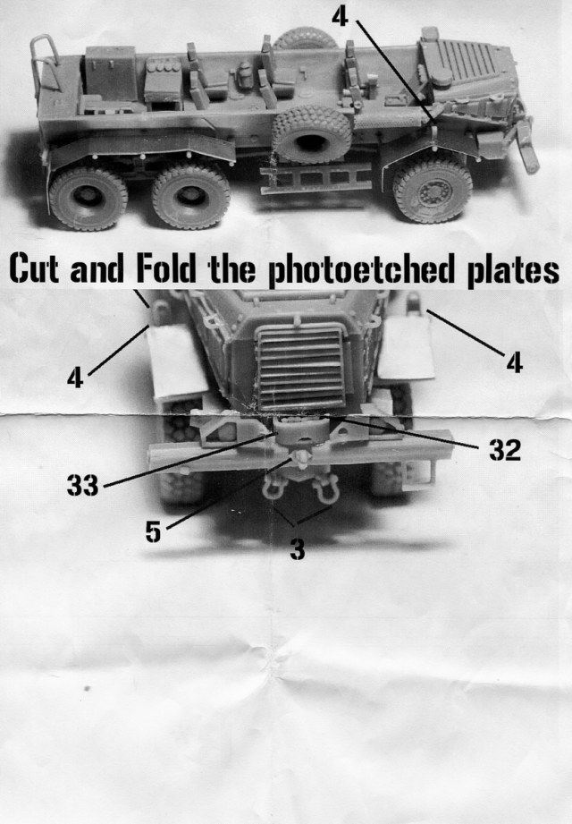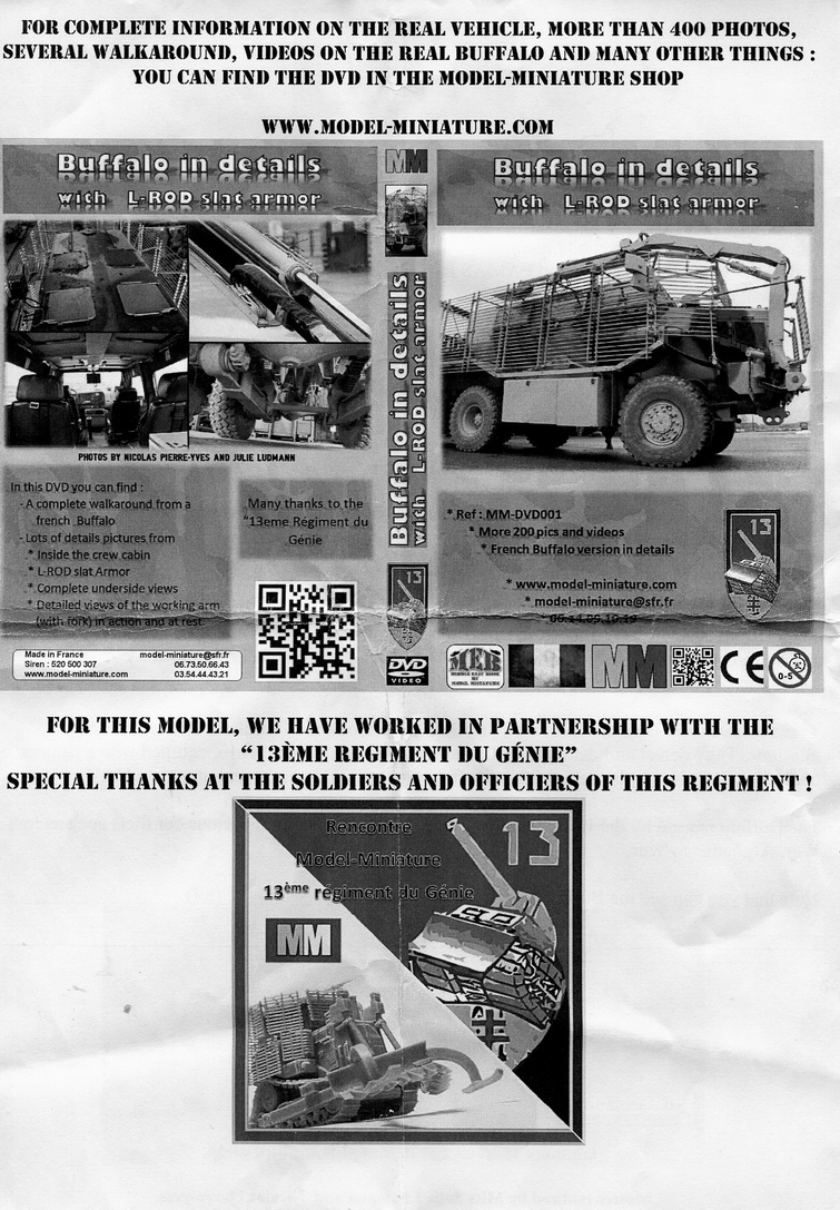 Квадратная коробка из картона с фото изделия на крышке....внутри - два пакетика с литниками и корпус - верхняя и нижняя часть в мягкой обертке....все отлито из новой серой(старая желтая) смолы....две полоски прозрачного пластика для стекол, две полоски из латуни для крыльев...Машина представлена во французском варианте - без доп.брони и SLAT-armor.....есть сапер с миноискателем...Отлито неплохо...есть небольшой облой....хреново что он тонкий и....ПРОЗРАЧНЫЙ....стекла в верхней ванне сделаны ВКЛАДНЫЕ(это +!!!) - под них сделана выборка....ходовая сильно упрощена....колеса с хорошим протектором, НО дырка литника порядка 3-4мм....манипулятор сделан неподвижным....декалей НЕТ!!!интерьер есть, но будет ли он виден????Инструкция - 6 листов формата А4 шлепнута на лазернике, проверял комплектность - поставил галочки, пытался стереть - пришлось оставит так....сканы вертикальные - смотрите в режиме ОРИГИНАЛ....