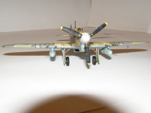 На модели отрабатывались современные технологии окраски - постшейдинг, смывка и пр. Окраска базой-высветление-глянц.лак-декали-глянц.лак-смывка, выхлоп-мат.лак. Также экспериментировал с красками и лаками. Собиралась из коробки. Дополнил модель имитацией гидрошлангов основных стоек шасси.