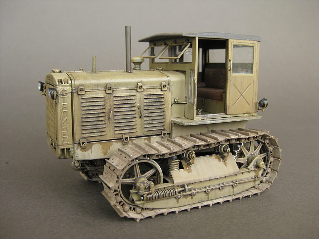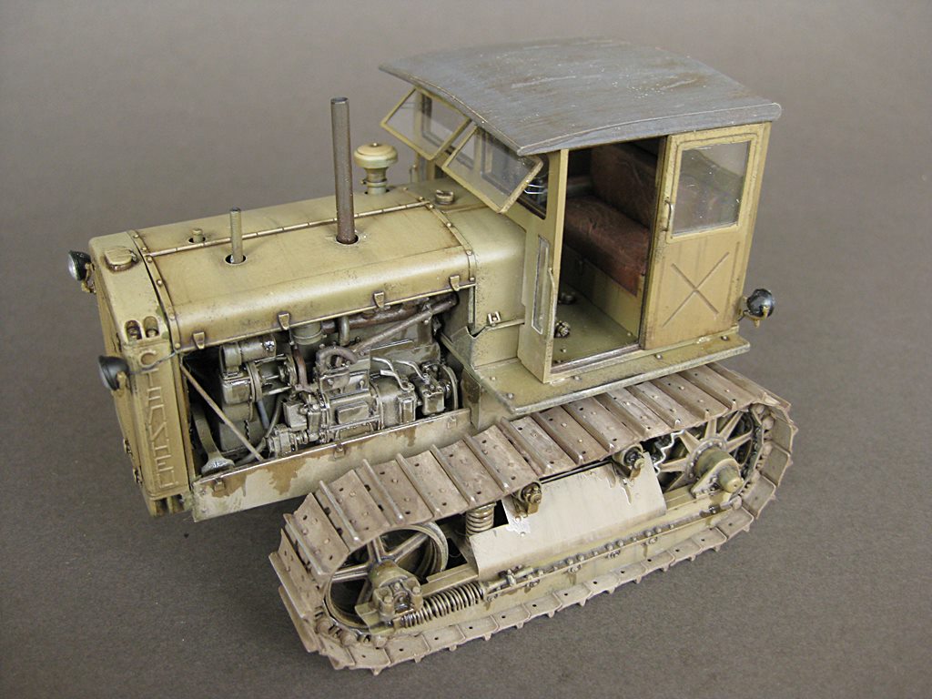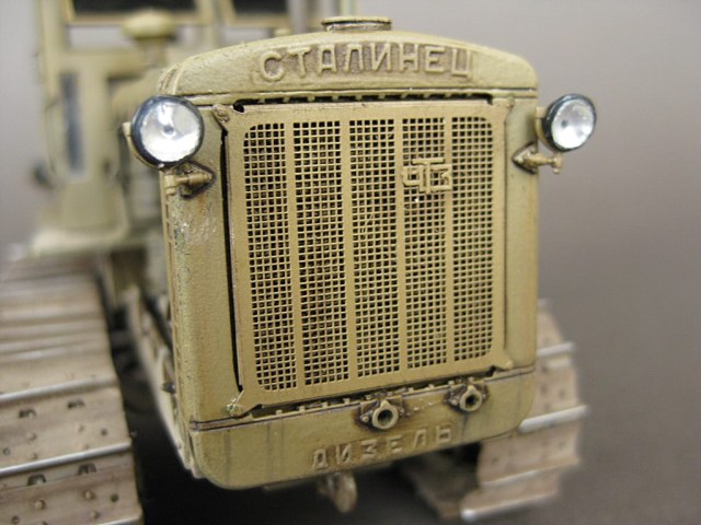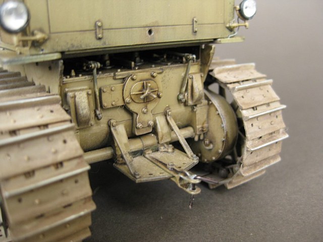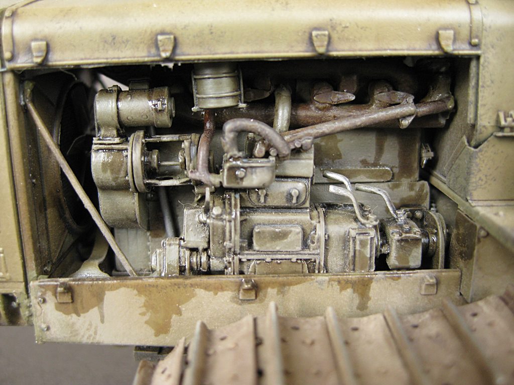 - Добрый день.Очередная модель от "Трубача".Для постройки был куплен двигатель и радиатор от LZ Models.Из доработак-различные проводки и рычажки на двигателе,у тягача заменил пружину от механизма натяжения гусениц,ручки на кабине,изготовил отражатели и линзы на фарах+проводка к ним.