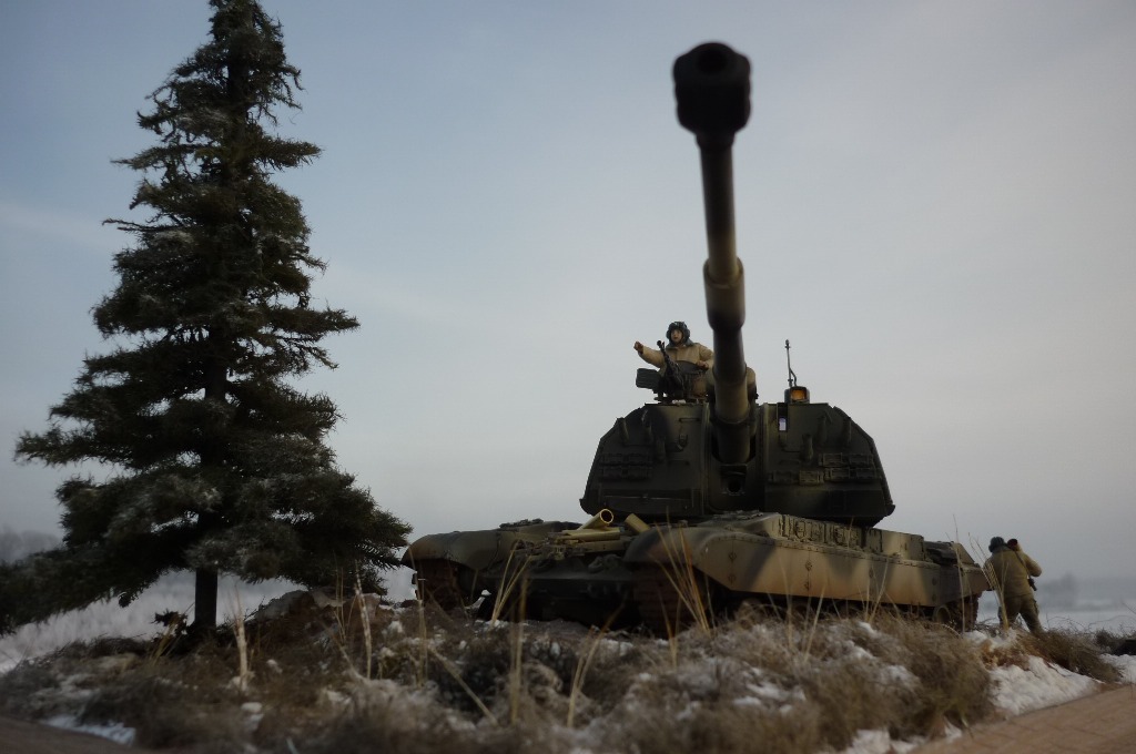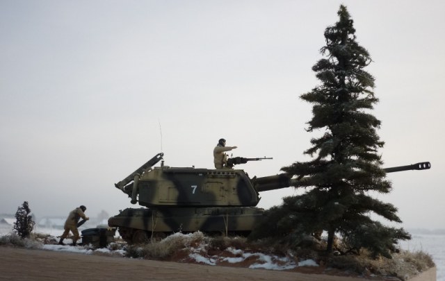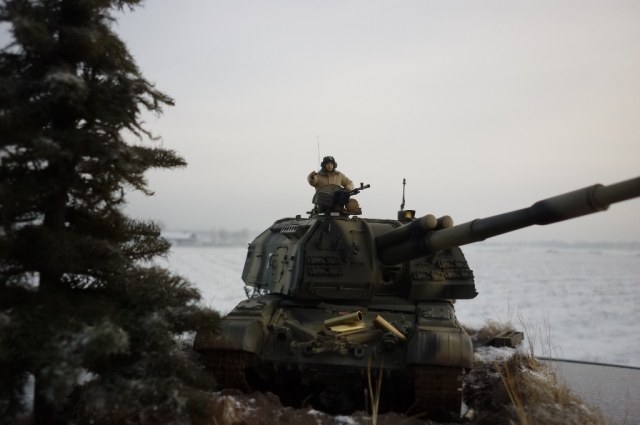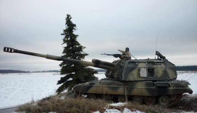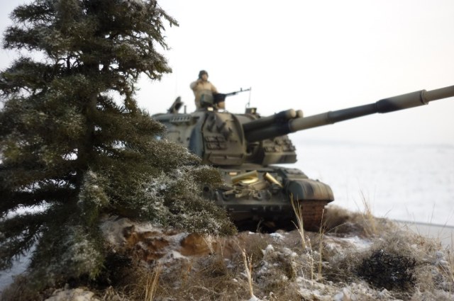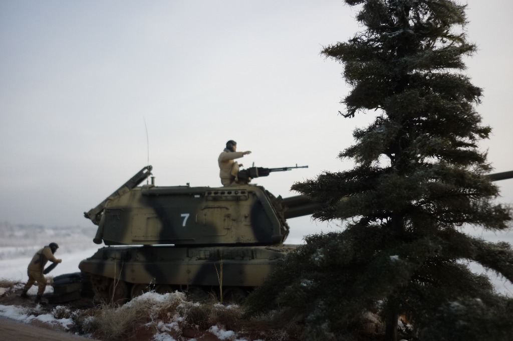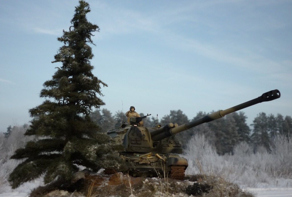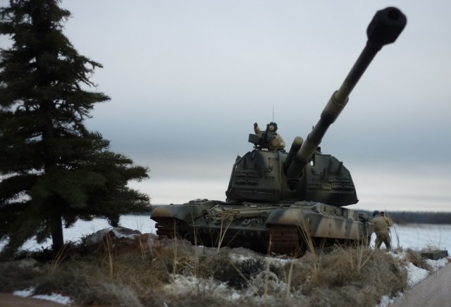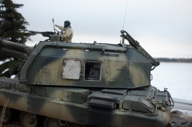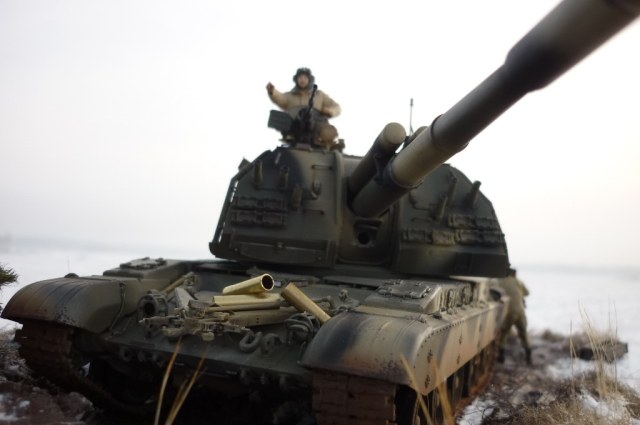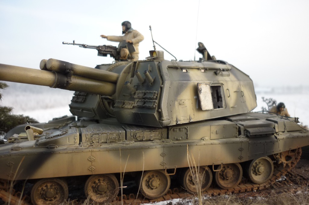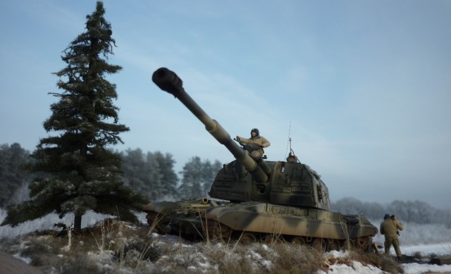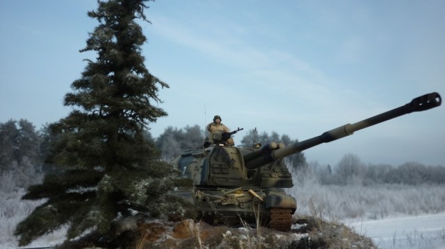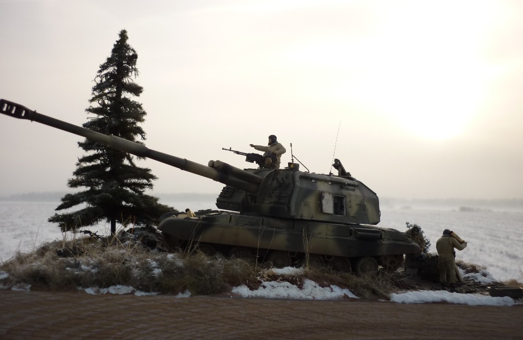 Доброе время суток! Доделал диораму, и спешу поделится с вами коллеги по цеху! Как всегда сделал сперва одну мсту! но на полке она стояла как то скучновато без экипажа, пришлось сконструировать все остальное, ну,а как получилось судить вам! Про мсту скажу собиралась не очень легко(очень много мелочи) почти полностью коробочный вариант, добавил только триплексы и немного внутреннего интерьера,бойцам поменя геометрию рук,красил как всегда тамия. Приятного просмотра!!!