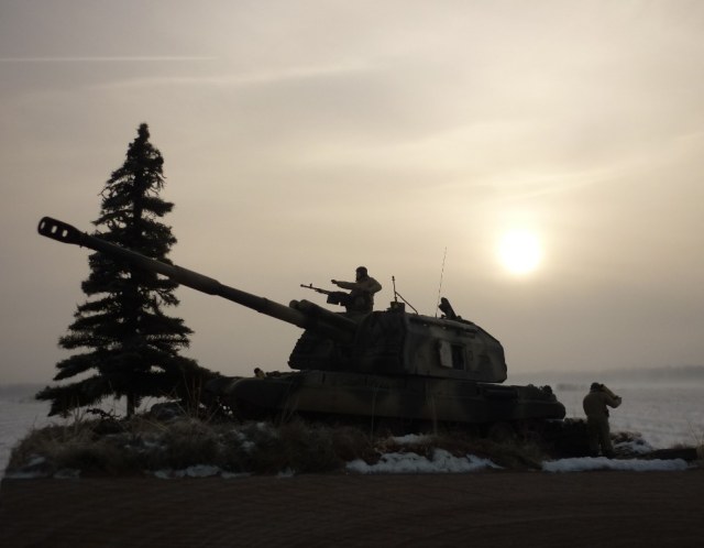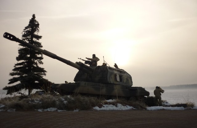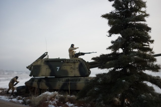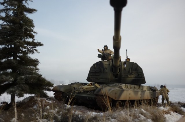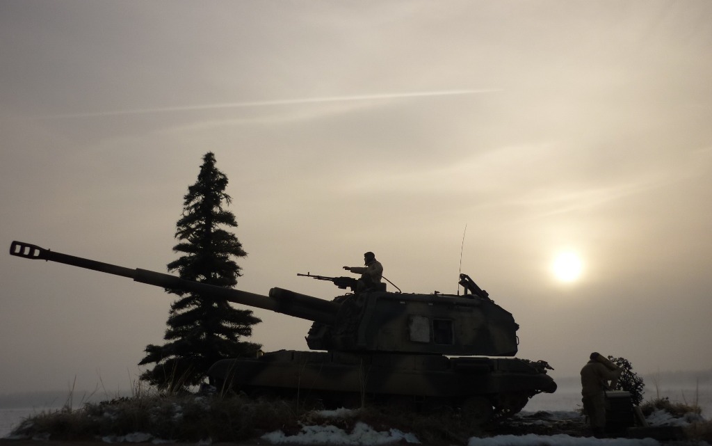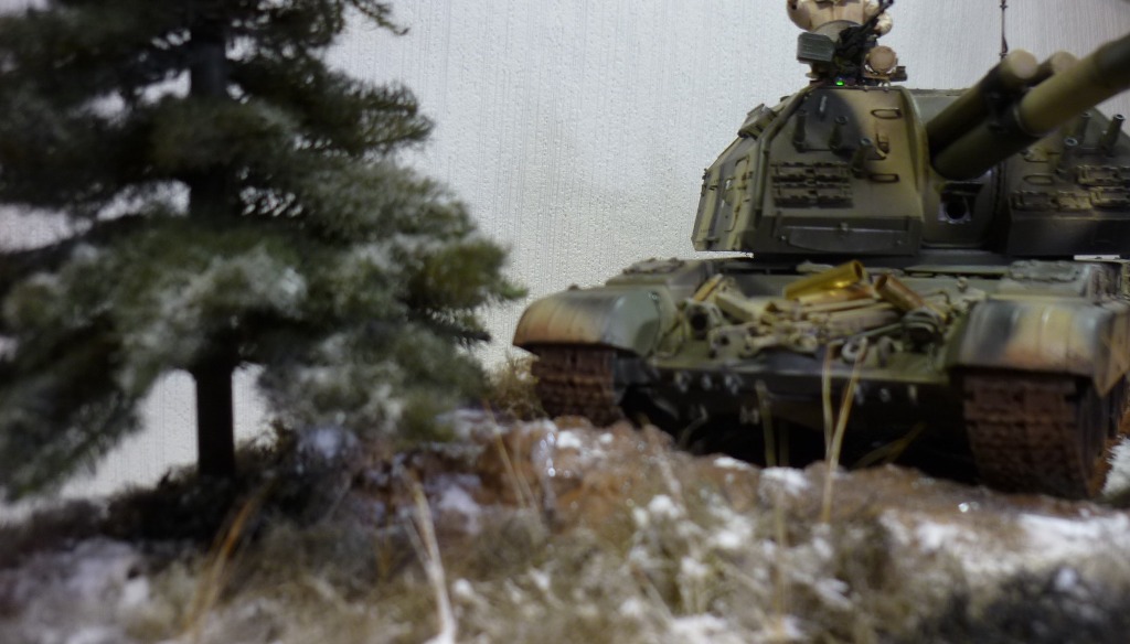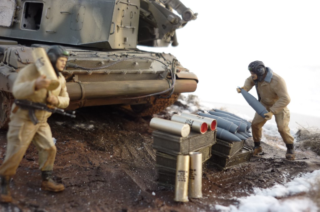 Неплохо, снег очень правдоподобен. Непонятно, куда указывает командир, зачем экипажу таскать с собой автоматы, тягая 152-мм заряды, зачем гильзы спереди на броне.