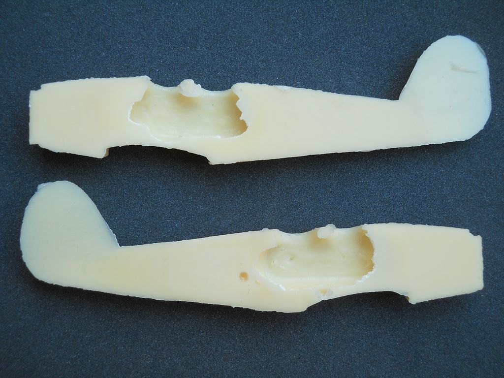 Капот с движком - цельный. Честно говоря, "другой коленкор" когда видно что движок отдельно и кольцо таунеда отдельно .Фюзеляж - цельнолитая болванка жуткой массы ( для самодельного шасси из пластика) с внутренним кроем вместо рёбер фюзеляжа на которые натянуто полотно.