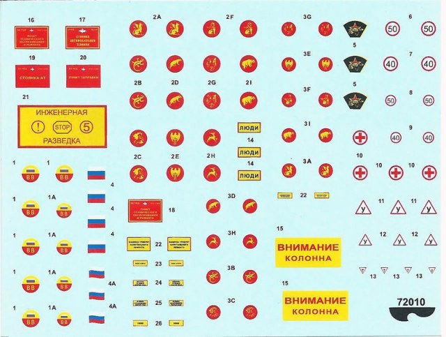 Все декали выполнены в правильном масштабе, за исключением Новороссии, которая частично (не в полном объёме) продублирована в 1:35.