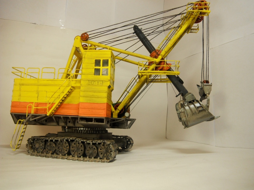 Доброго времени суток уважаемые коллеги, Представляю вашему вниманию модель карьерного гусеничного экскаватора ЭКГ 8И . Экскаватор ЭКГ-8И электрический полноповоротный предназначен для разработки и погрузки в транспортные средства или в отвал полезных ископаемых и пород вскрыши на открытых горных работах в черной и цветной металлургии, промышленности строительных материалов, угольной промышленности, а также для выполнения больших объемов земляных работ в промышленном строительстве. Выпускались экскаваторы ЭКГ-8и ("и" - Ижорский) с 1965 г. на Ижорском машиностроительном заводе им. А.А.Жданова на базе переданной с УЗТМ экскаватора модели ЭКГ-8. В 1968 г. экскаватору присвоен государственный Знак Качества. Одна из самых надежных и долговечных машин из серии ЭКГ.