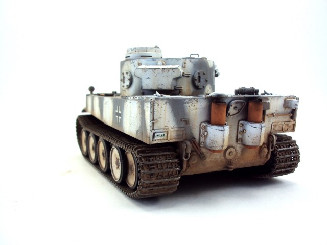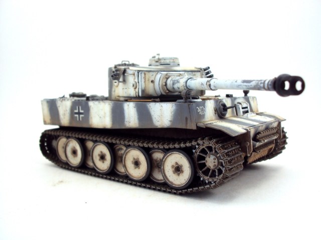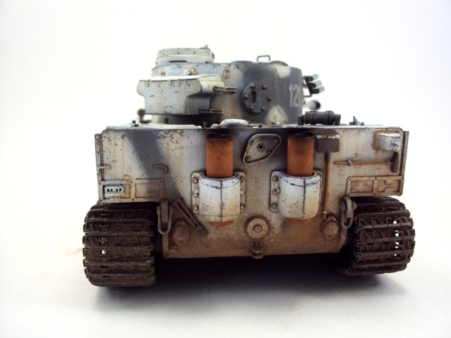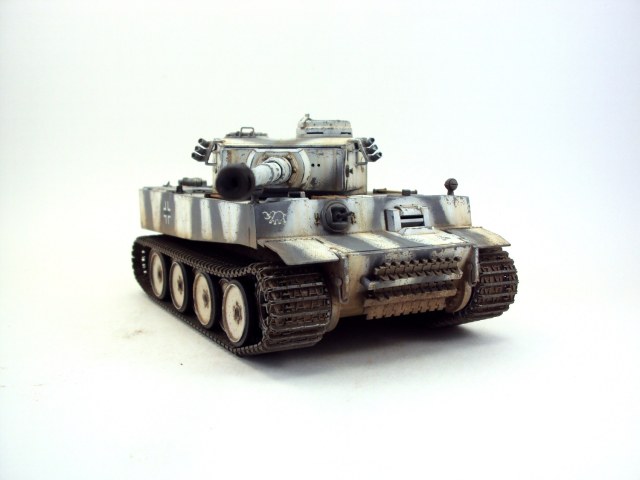 Хорошая работа! Как то раз, я тоже собирал именно этого Тигра (121), правда от Дракона. И Вы, так же как и я, не стали устанавливать буксирные тросы на крышку корпуса. По этому поводу у нас с коллегами вышел небольшой спор. Значит все таки не было их там. Еще меня смущает наличие наружного переднего опорного катка, хотя..... ведь когда то же он был там, его же не сразу сняли, так что моя придирка не о чем)))