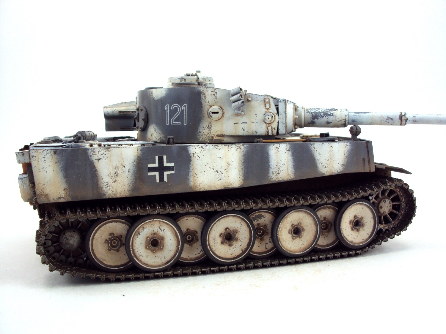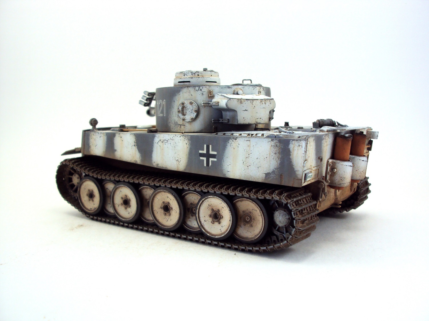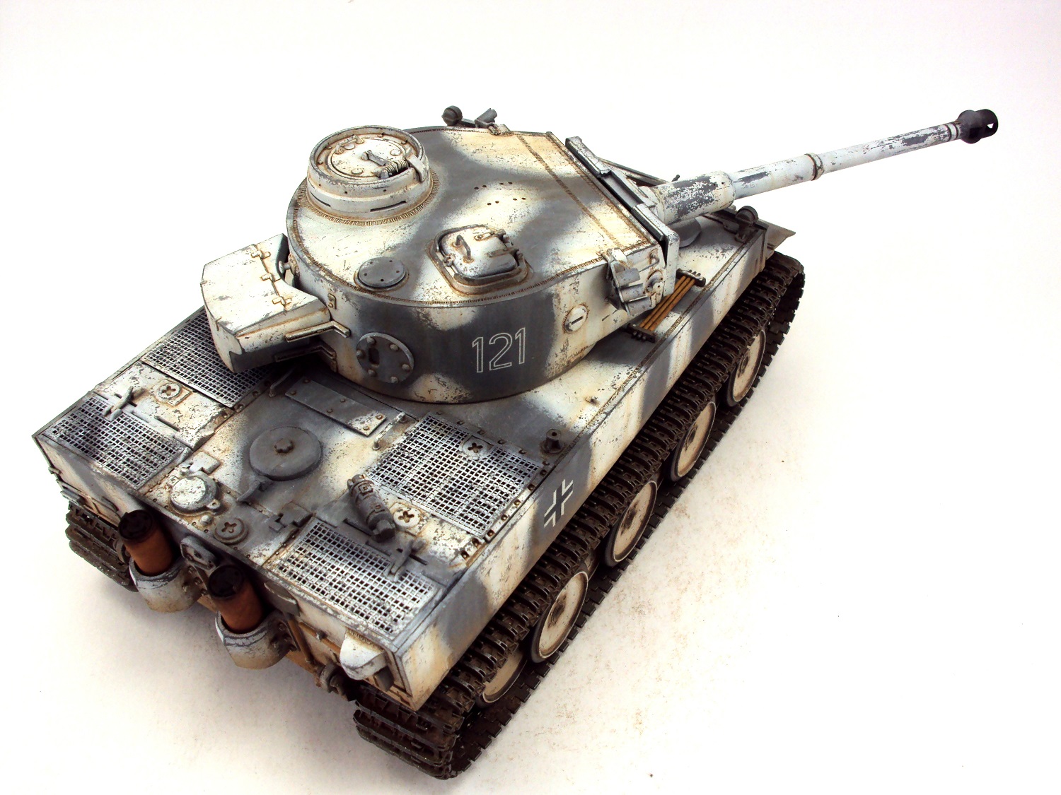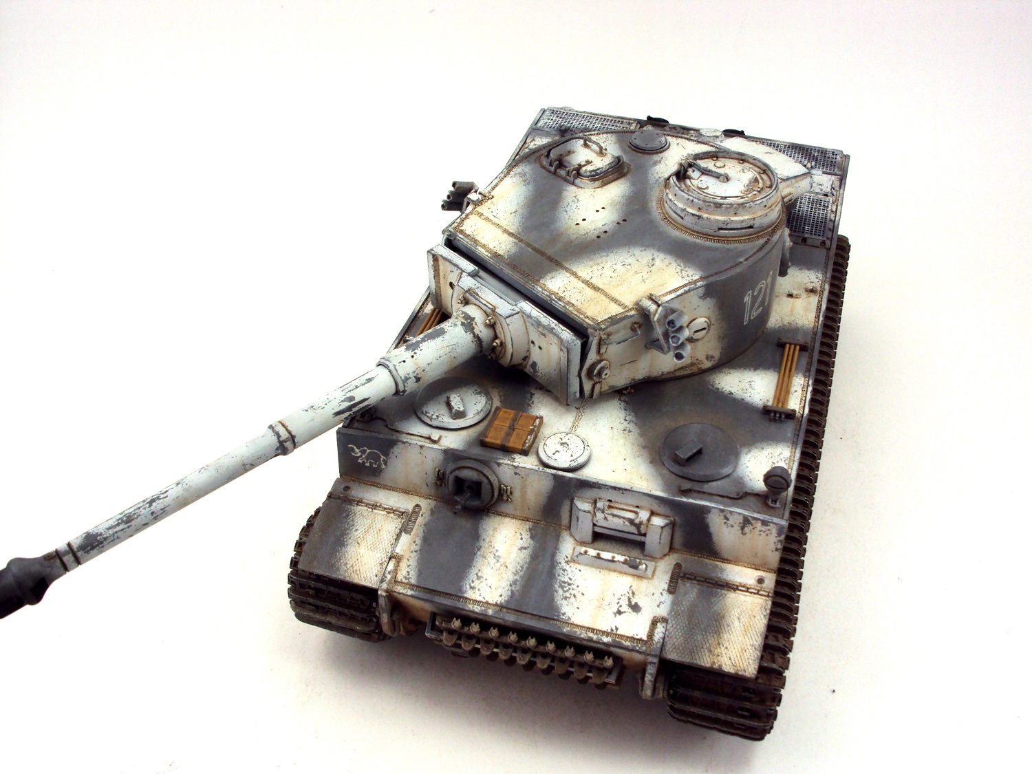 В своей работе пытался сделать модель танка хотя бы отдалённо похожую на прототип (один из первых Тигров под номером 121).Косяков по матчасти осталось еще куча, которые мне по разным причинам не удалось исправить.