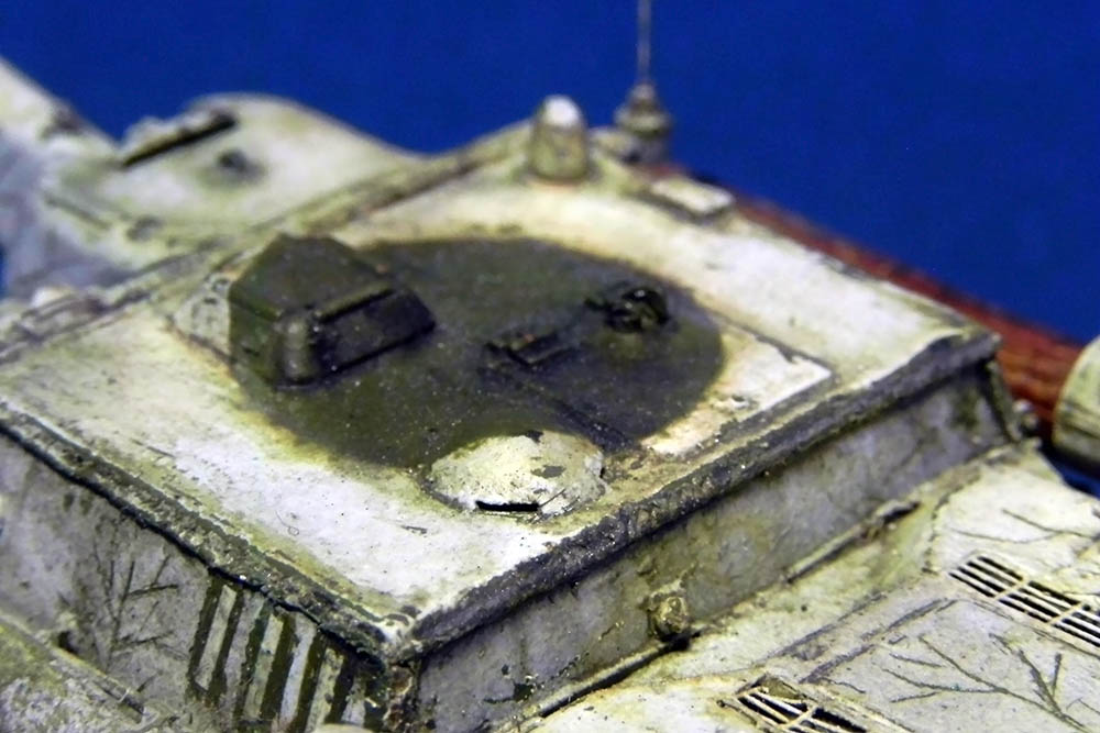 машинка понравилась-особенно веточки камуфляжа, но для полного эффекта я бы заменил катки умовские на нормальные(например драконовские) без такой ужасной ребристости резины, и круг все же красный-с высоты полукилометра например зеленый не будет читаться-так что "один западный автор" был прав, тем более он не один)