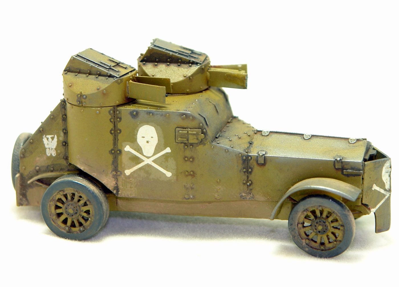 Представляю вашему вниманию второй по численности после Остинов, импортных броневиков в РИ. И третий в абсолютном количестве после Гарфордов. Модель приятная в сборке. Сделал с дакалями батальона Смерти от Эмхар. Цвет выбрал английский, так как прототип, хоть и переделывался в Петроградских мастерских, но вряд ли целиком перекрашивался. Надеюсь понравиться.