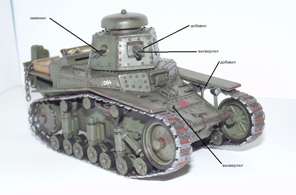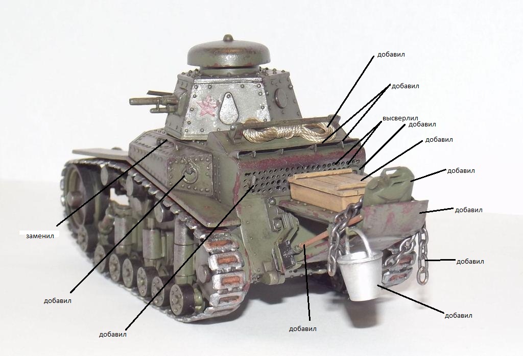 6. С нуля сделаны "хвост", башня с вооружением, катки, амортизаторы. "огромный плюс к похожести"