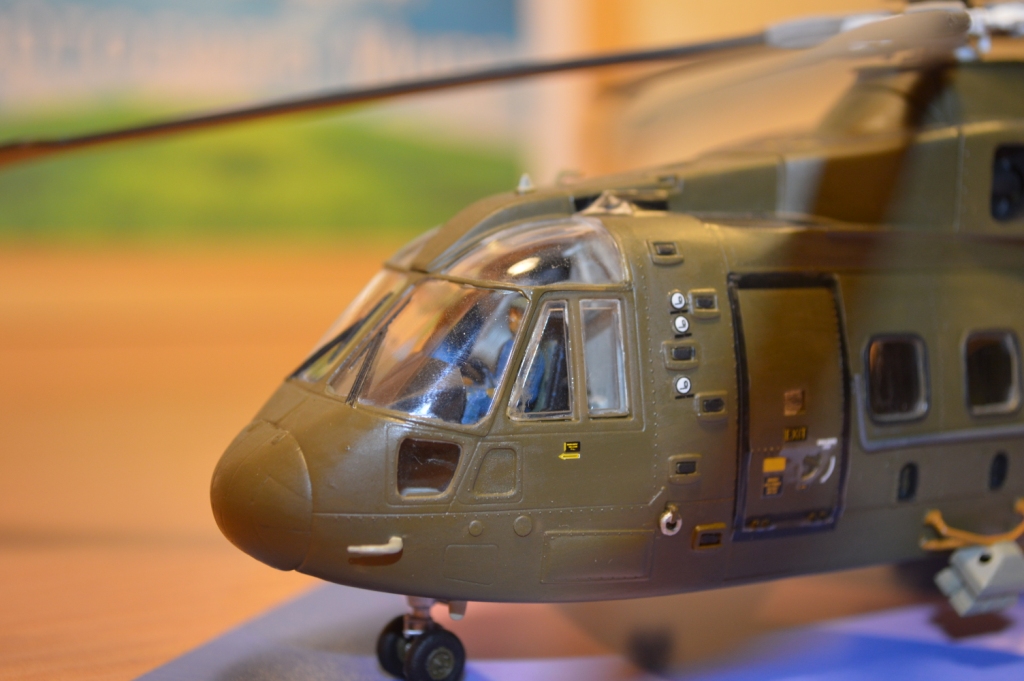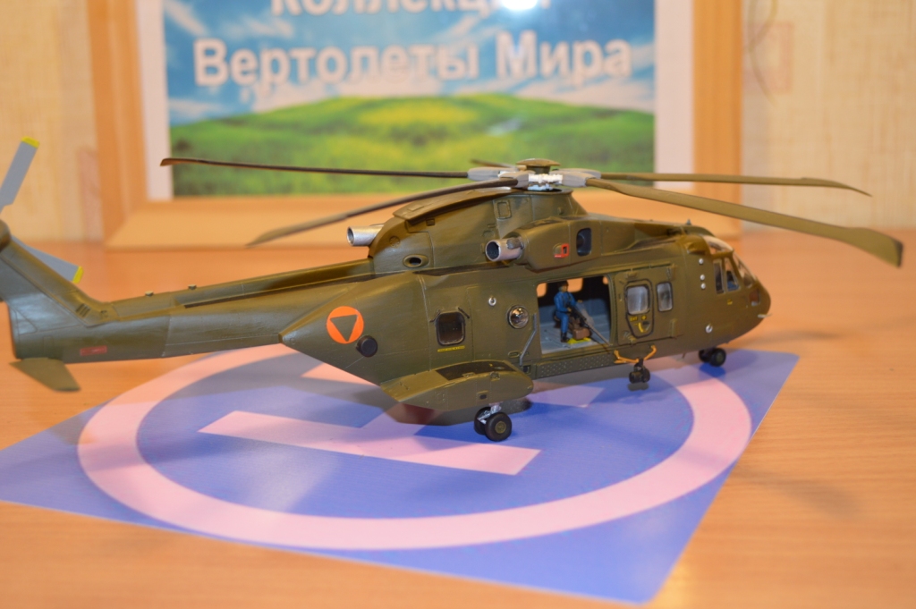 Хочу показать следующую свою модель. AgustaWestland AW101/EH101 Merlin от производителя моделей Italeri. Модель достаточно качественная и проблем со сборкой не было. Декали в наборе одного варианта. Но я специально хотел именно данный образ, т.к. "Бондиана" мне в целом симпатична. Представленная модель выбрана в образе из кинофильма про Джеймса Бонда "Координаты Скайфол". Создание данного красавца принесло только удовольствие. Да и в принципе реальная модель мне достаточно симпатична. Красил кистью акрилом от Tamiya или Gunze Sangyo, не могу вспомнить. Больше никаких спецэффектов, т.к. пока серьезными навыками спецобработки не владею. Цвет мешал сам на глаз по кадрам из фильма и рекомендации производителя. Непросто судить на сколько попал в цвет, т.к. в кино освещение было достаточно темновато, да и фотать также можно при разном свете. Но в целом результатом довольно. О результате судить вам.
