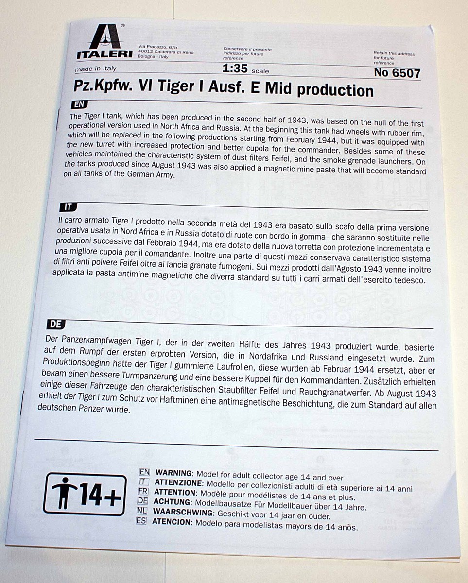 Pz. Kpfw. VI Tiger I Ausf.E mid production от Italeri в 35 масштабе.