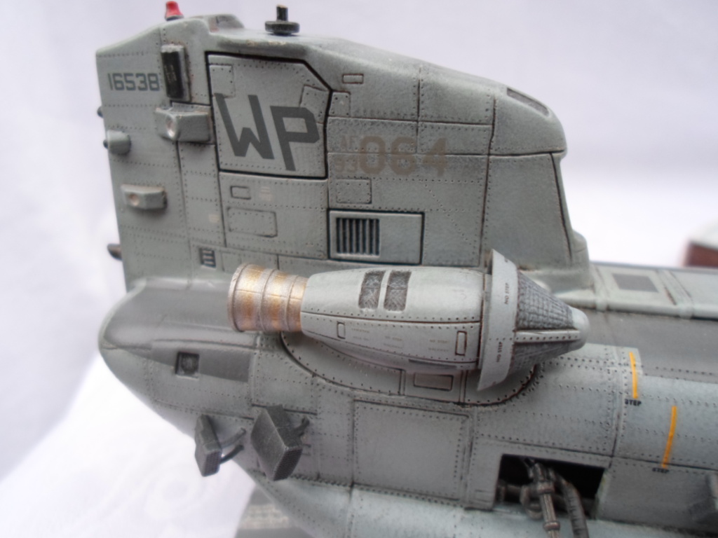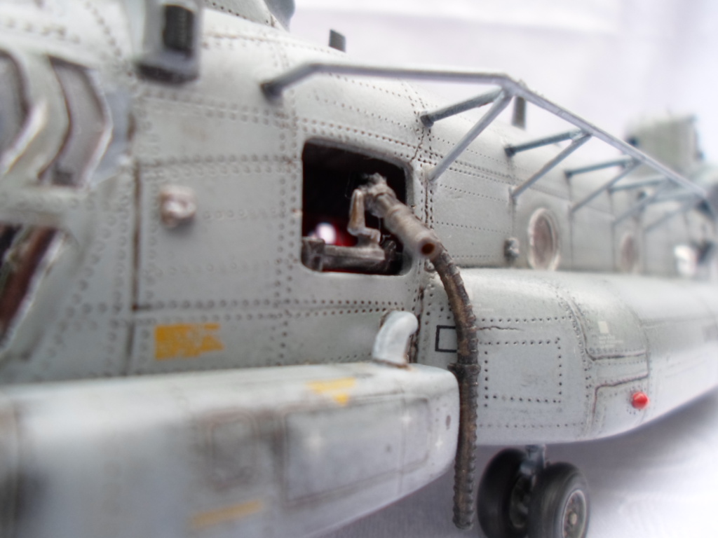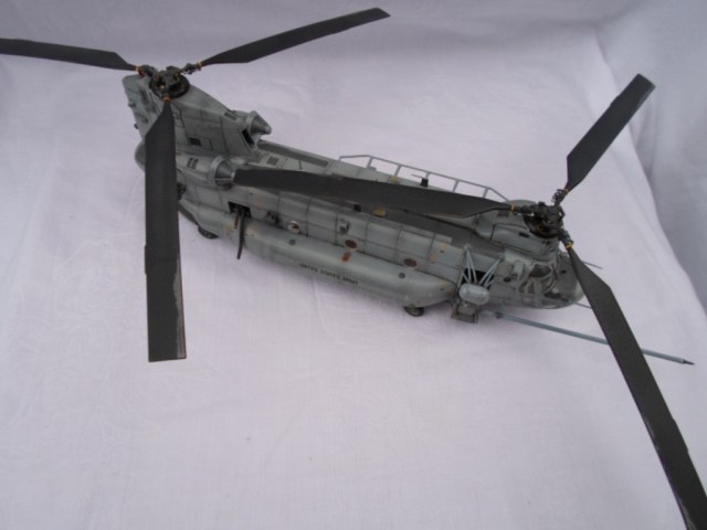 Вертушки эт моя слабость.Особенно крупные.Я его даже и не думал запиливать.Но повертев набор в руках и порывшись в интернете...знаете когда руки чешутся- я драться не люблю.Есть конечно не точности с прототипом.Толи на заводе они комплектуют по разному (ну это когда в машине, одной и той же модели, в одной есть стекло подъёмники,круиз контроль,обогреватели зеркал, парктроники,и тд. и тп.а в другой нету),так и здесь.Толи я не залазил в дебри особо.Собирал я его долго.Весь фарш из подручных материалов.Это и жесть от крышки кофе(мембрана),и сыростирол,тянутый литник,и запчасти от пред идущих моделей и липкий скотч(на натяжных сидушках),стразы у своих девчат отрывал на фары.Собирал не помню сколько.На финишном этапе решил попробывать грунтовку автомобильную для пластика(типа бамперов) и как ктото советывал не помню прямо из болона покрыть.Чуть не выбросил.модель.Залил сильно.Поймав себя на руки,пошёл спать.Ночь глубокая была.Вернувшись на следующий день с работы посмотрел на модель и успокоился.Грунтовка усохлась кое где потрескалась но не испортила модель в целом.Под шаманил местами и продолжил играться-цвета подбирать.Скажу вам не лёхкая это задача-выбрать красивый "камок" для этого многокрыла.Они и непонятно чёрные,и серые- тоже непонятно какие,и песочные и обычные-хаки маки.Ну выбрал я вроде, чтобы не как у всех-моделистов,собиравших сей вертолёт.Прошу к просмотру.У нас же самый гуманный суд,как изрек Вицин.