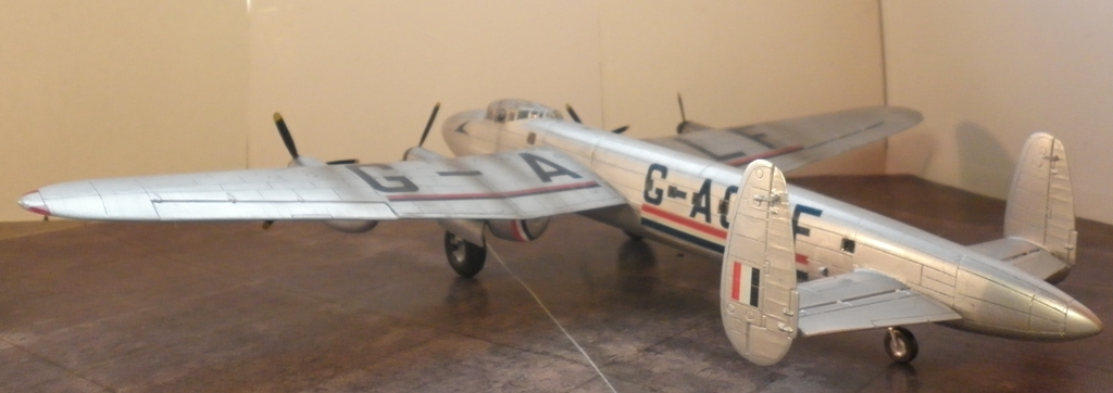 Пассажирский вариант знаменитого "Ланкастера" применялся как в годы войны ( данная машина) , так и после войны. Впрочем , он использовался ,скорее , в качестве пакетбота - всего 12 пассажиров маловато для такой махины. Потому в носовую часть загружалось до 2х тонн компактного груза , в основном , почты.