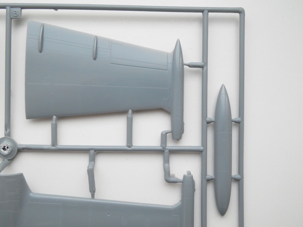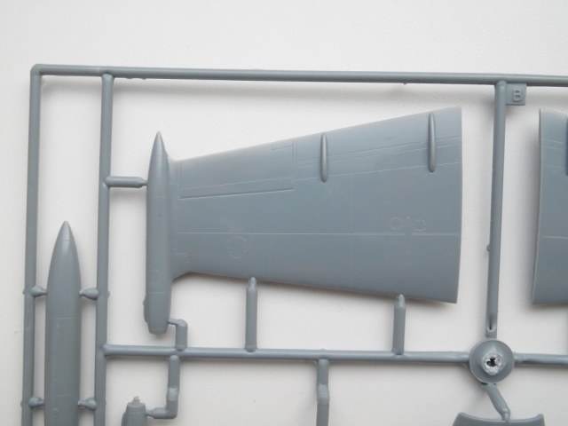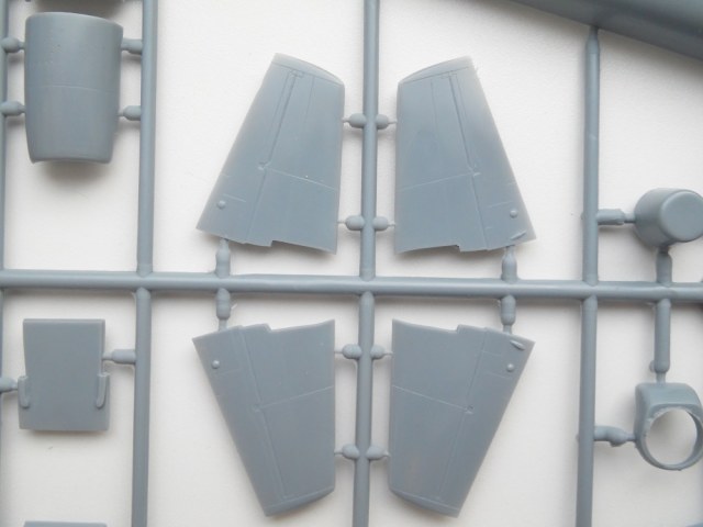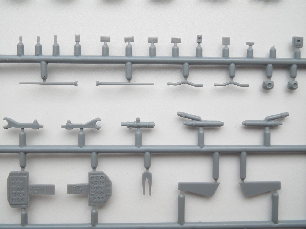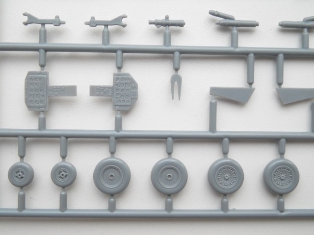 В маленькой каробке из тонкого картона находится три литника с деталями модели из серого пластика . Теперь рассмотрим содержимое набора немного поподробнее :