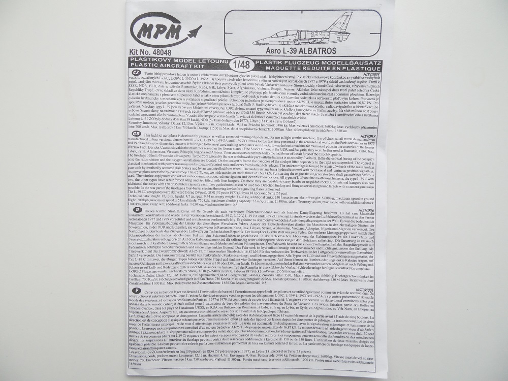 Приветствую Всех и Доброго времени суток уважаемые коллеги и гости сайта, хочу предложить вашему вниманию обзор модели L-39 albatros в 48-ом масштабе от чешского производителя MPM .