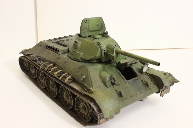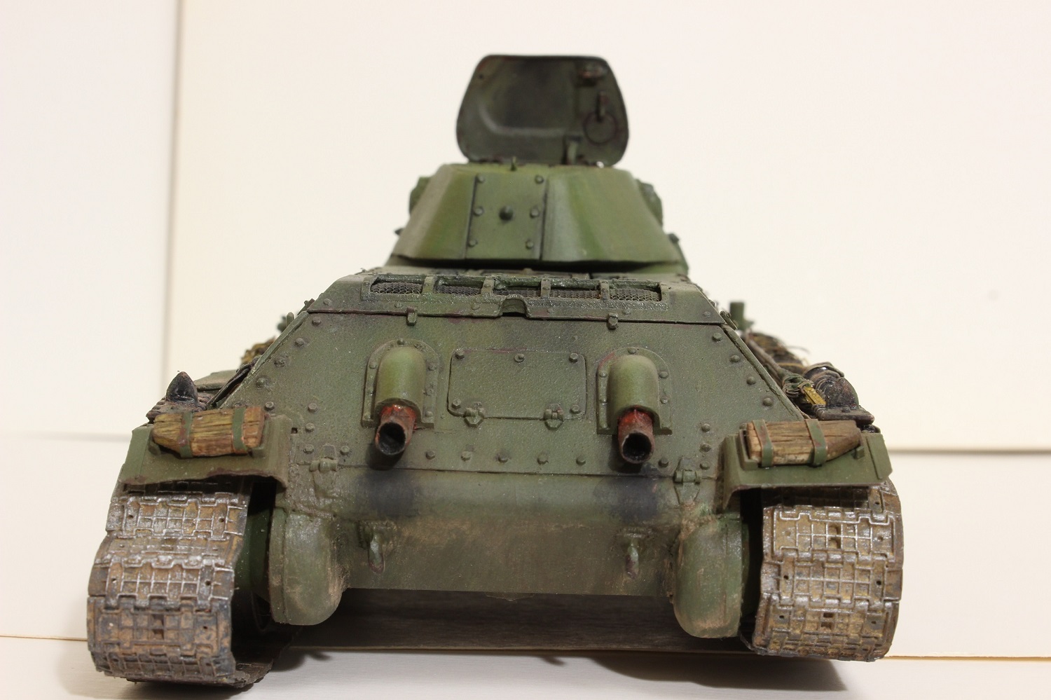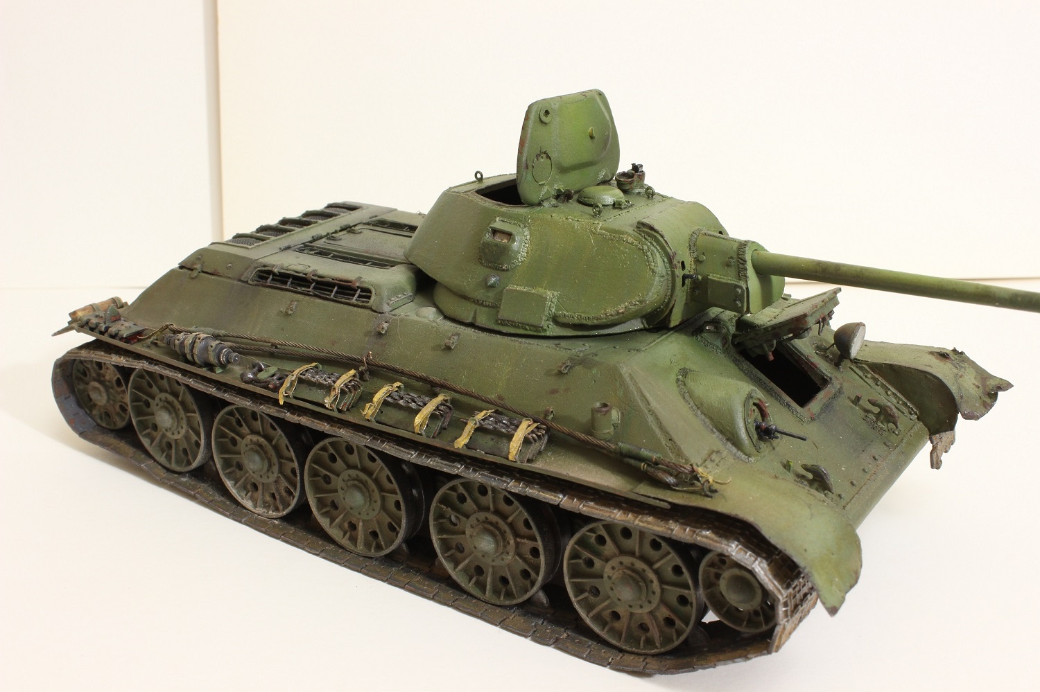 Добрый вечер. Всех с прошедшими праздниками. Выставляю на ваш суд модель Т-34-76, "сталинградка", от MSD. При сборке ни каких допнаборов не использовал. Ствол, лопаты,домкраты самодел. Полки и крылья медная жесть. В дальнейшем хочу сделать виньетку с экипажем покидающим танк.Краски : "Звезда","Хо-Ма".