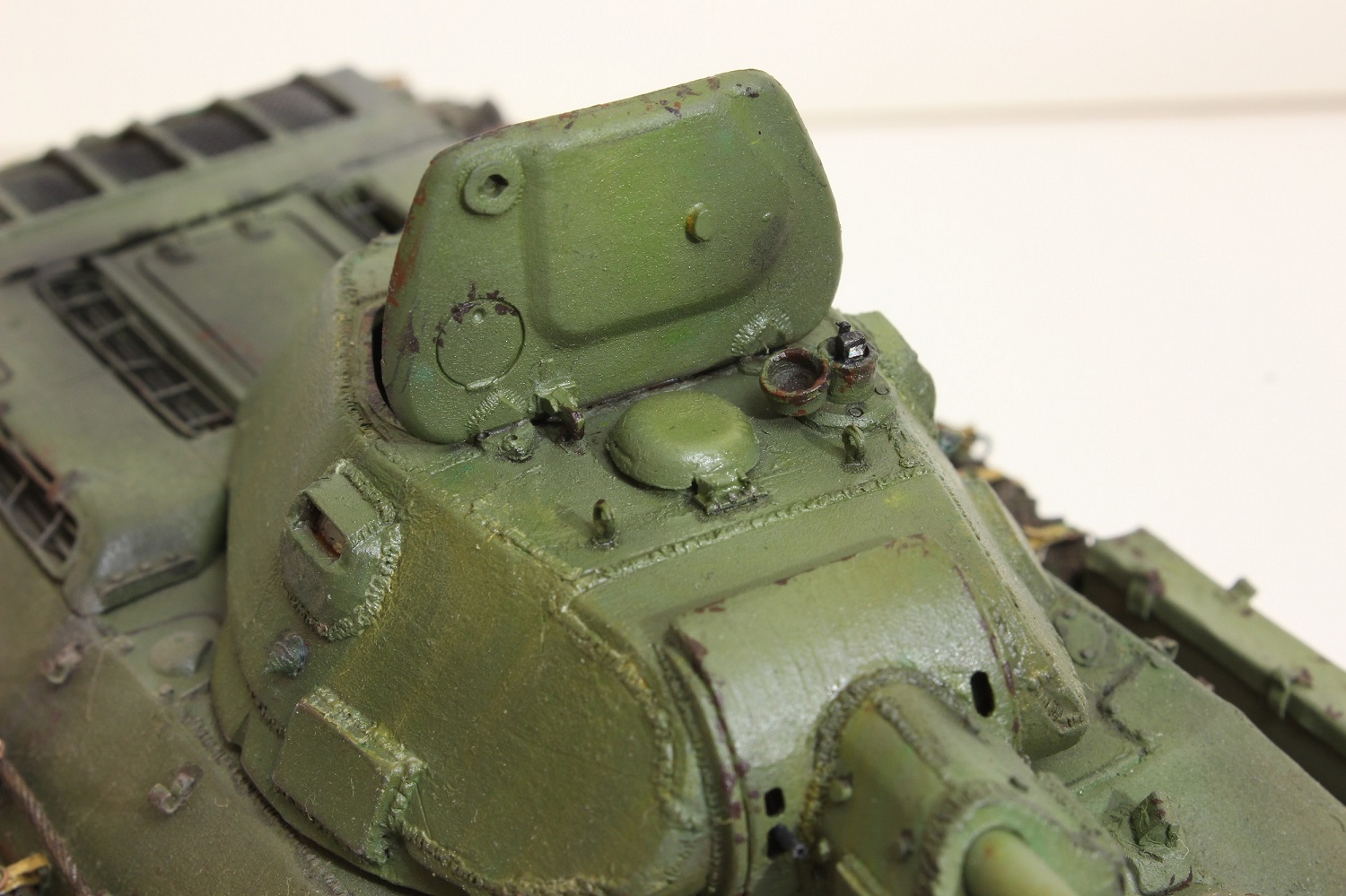 К сожалению, заметен не зашпаклёванный стык на ВЛД, где Вы доклеили полоску с болтами. Швы даже на СТЗ всё же были аккуратнее, а так - ассоциируется с 72-ым масштабом. Броневая накладка возле пистолетного порта сильно "уехала" вверх и немного вперёд. На боковых решётках к радиаторам не 2, а 3 горизонтальных прутка. Ну и сетку над жалюзи ТО сильно глубоко посадили, там надо больше пластик стачивать.