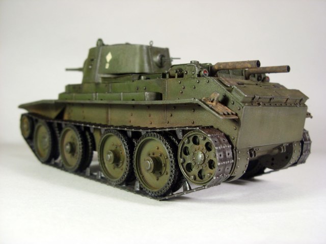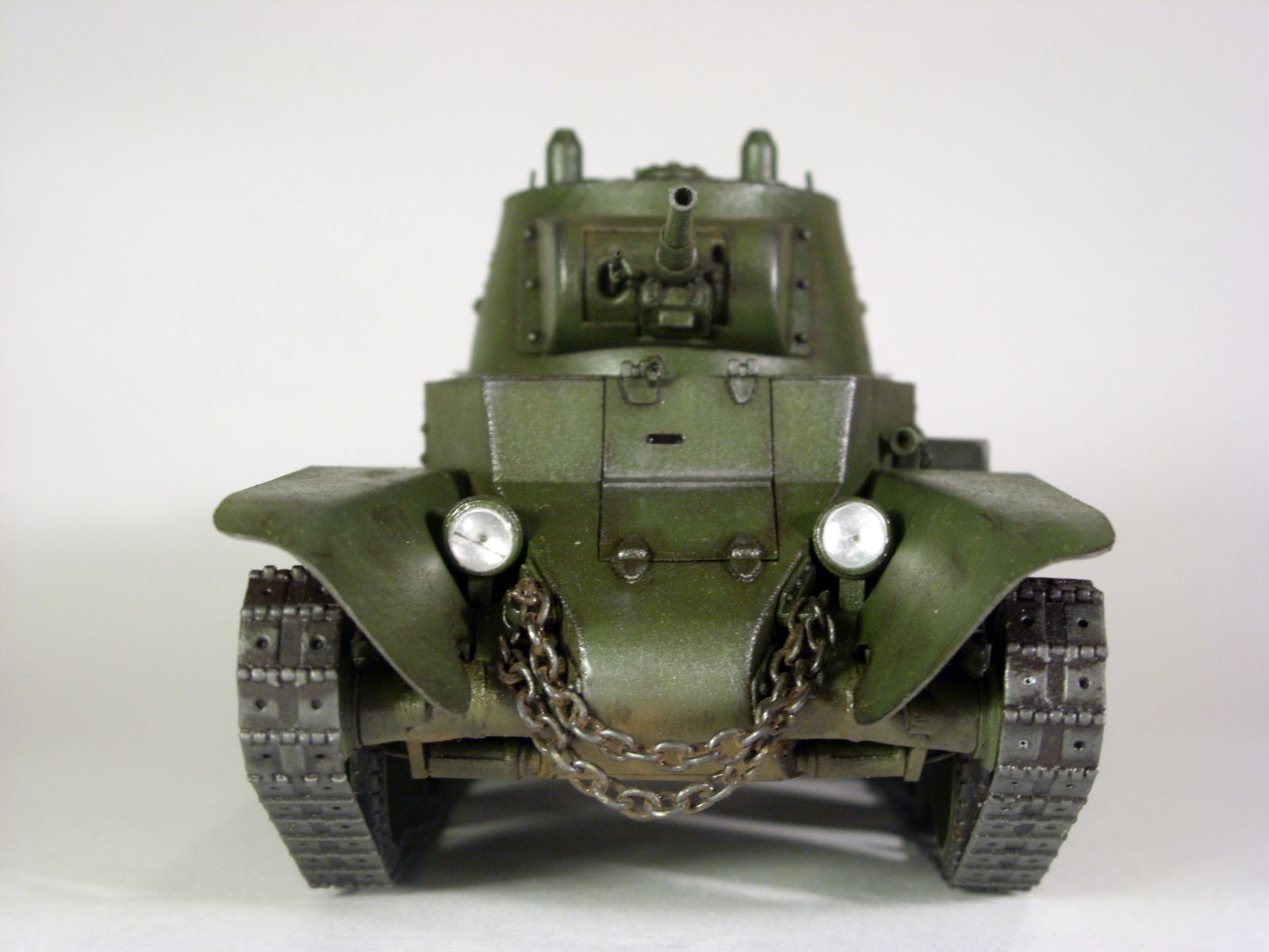 БТ-шки - это моя любимая тема,Своим изяществом и колличеством доделок - эта машина - находка для моделиста.Хорошо смотрятся траки,вообще мне всё понравилось,НО, свои пять копеек: пулемёты????!!!-зелень не очень смотрится на них, задние стопари-грубовато,но глаз это не колет.Твёрдая (5).