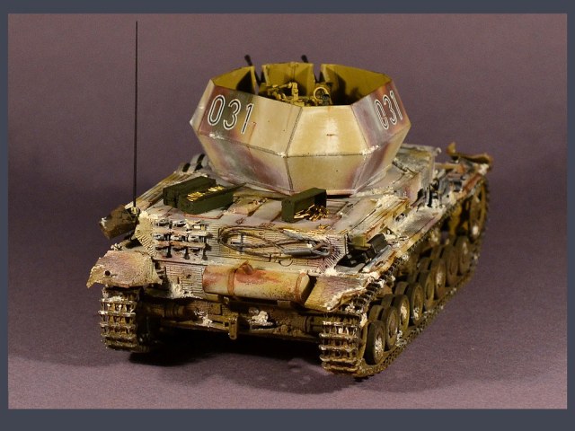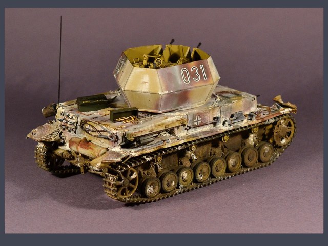 Модель строилась с применением фототравления, смоляного циммерита, металлических стволов и траков.