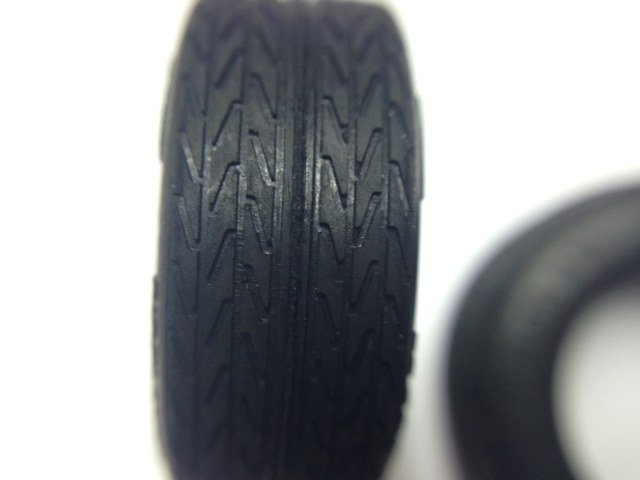 Резина меня расстроила чуть больше, чем полностью. Во-первых: на каждой покрышке имеется ужасно грубый шов (как это исправлять вообще не представляю). Хотя, опять же, просто на полке этого заметно не будет и для не особо замороченных моделистов это не станет проблемой. Во-вторых: диаметр передних и задних дисков разный, а вот резина имеет одинаковые отверстия. Поэтому на передние диски (которые меньше) резина оделась отлично, а на задние даже с усилием отказалась налезать. Понятно что это резина и в итоге она натянется (наверное смазка в комплекте именно для этого), но смотреться это будет как минимум странно (ИМХО). Ну и третье и самое важное: на прототипе стоят шины Good Year Eagle GT, что видно не вооруженным глазом на той же сравнительной картинке. В набор по абсолютно непонятной причине решили положить резину Pirelli. О чем думал производитель? Возможно это только конкретно в мой набор случайно попал неправильный комплект резины, но я в этом очень сомневаюсь (поиск в интернете не дал ни какой информации по этому вопросу). Итог по резине и дискам: для любителей копийности - диски еще можно при желании доработать, а вот резина в утиль; для не замороченных - можно использовать, результат будет смотреться сносно.