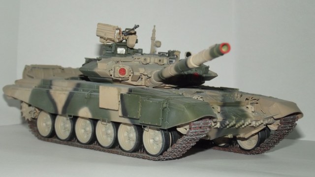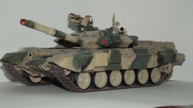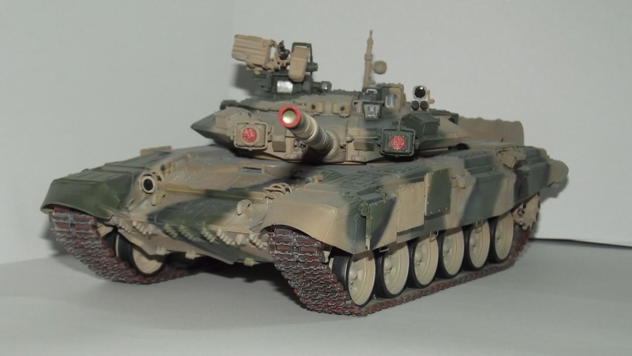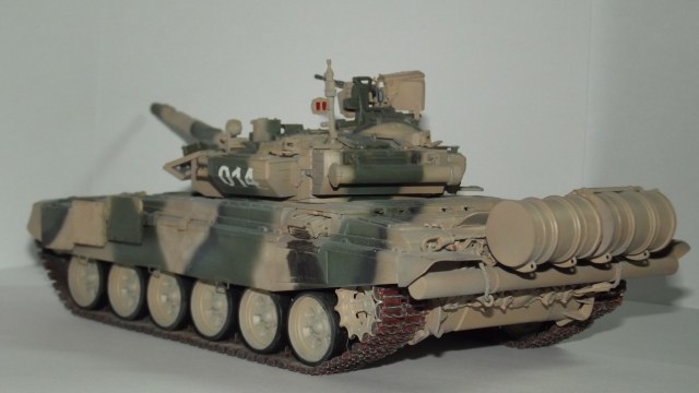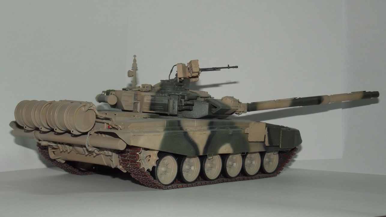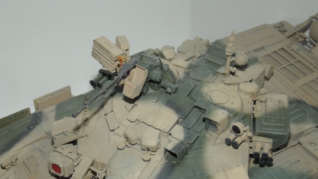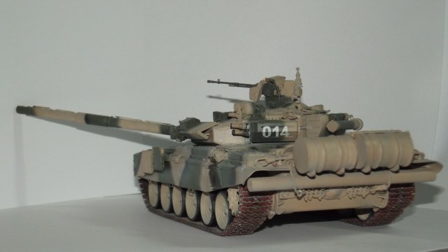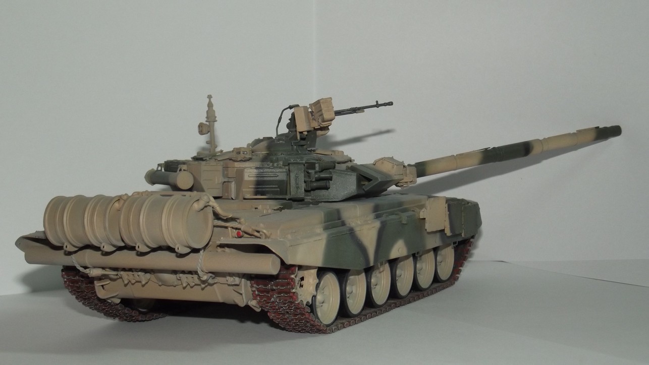 Модель от Звезды с травлением, резиновыми экранами и металлическим стволом от неё же. Траки смоляные MasterClub. Краски Звезда и Тамия. При сборке слегка занизил клиренс и пониже приклеил бортовые блоки динамической защиты.