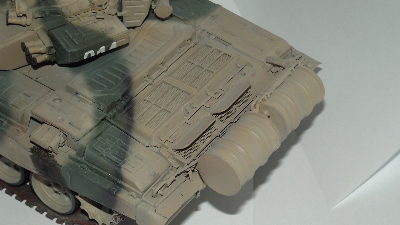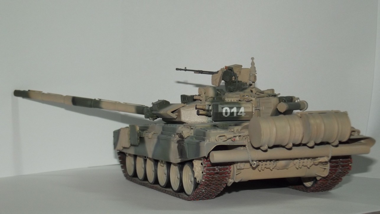 Хоть и с запозданием,НО всё-же. Работа выполнена отлично.Камуфляж - эталонный.Немного смущает светлая окраска задних элементов,НО признаться-не специалист,могу чего то не понимать.От меня -ВЫСШИЙ БАЛЛ. Т-72 выглядит по-проще(Эффекты теряются-чуть бы посветлее и ствол обязательно углубить)-И В БОЙ!!! Только за одну надпись-ВЫСШИЙ БАЛЛ