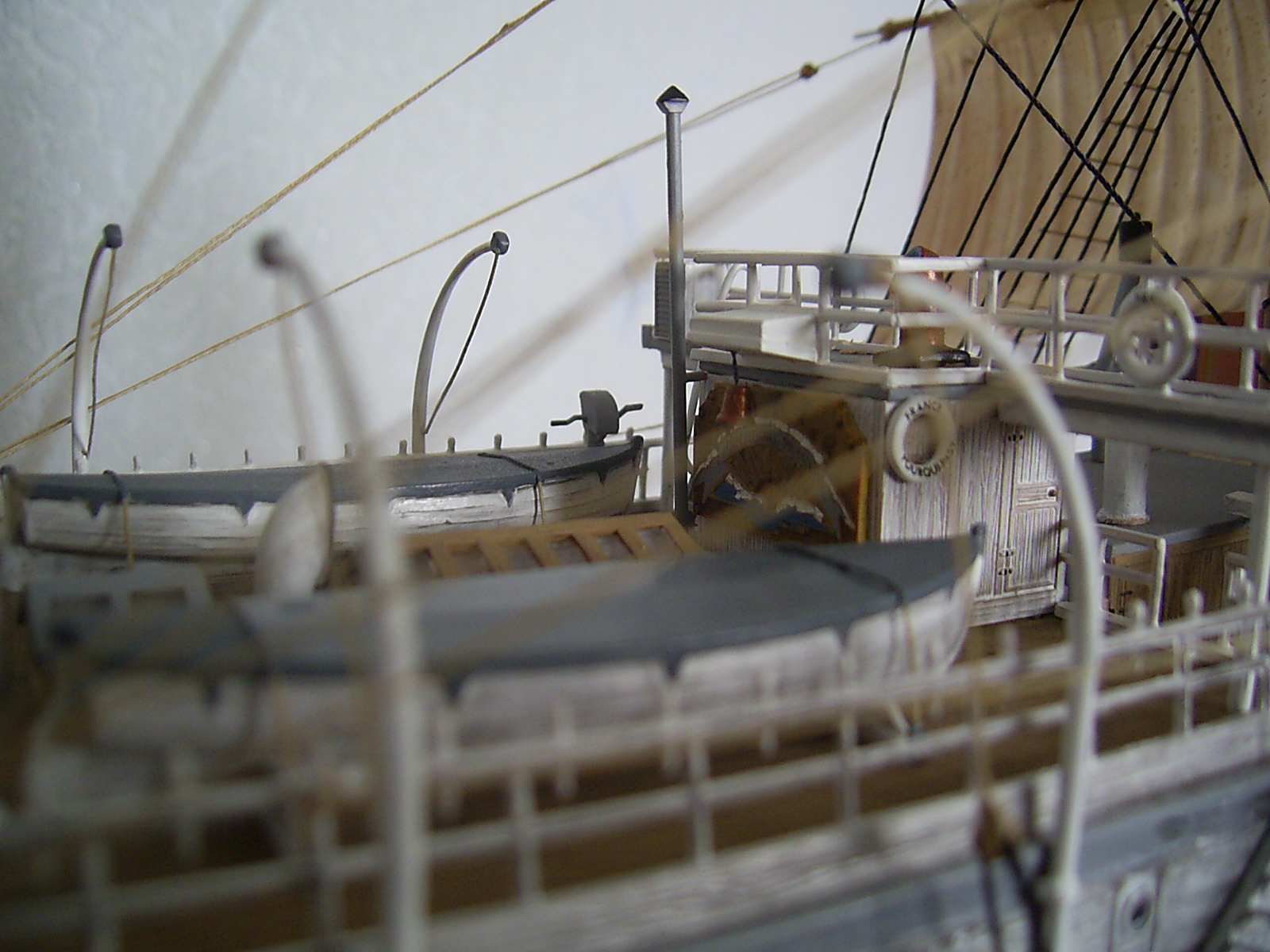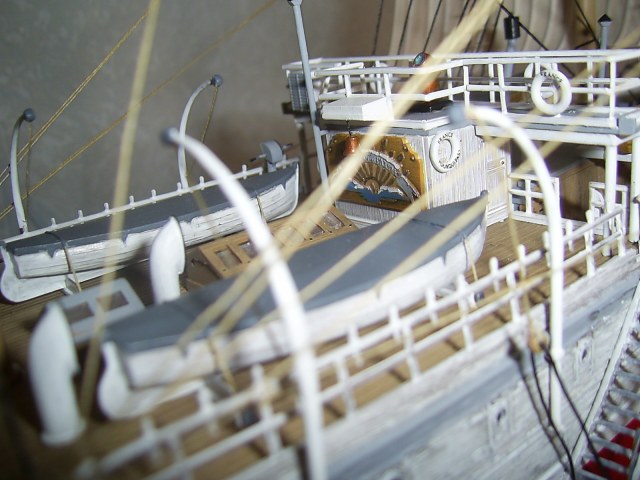 Работа хорошая, но много ляпов... Спасательные круги, часть красно белые, а другая сплошь белые...... спорное крепление шлюпок по походному в районе носовых гальюнов.....