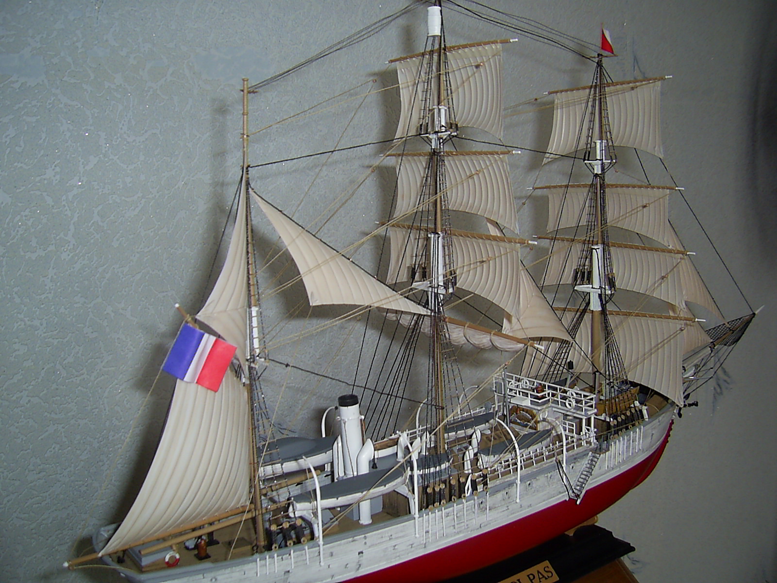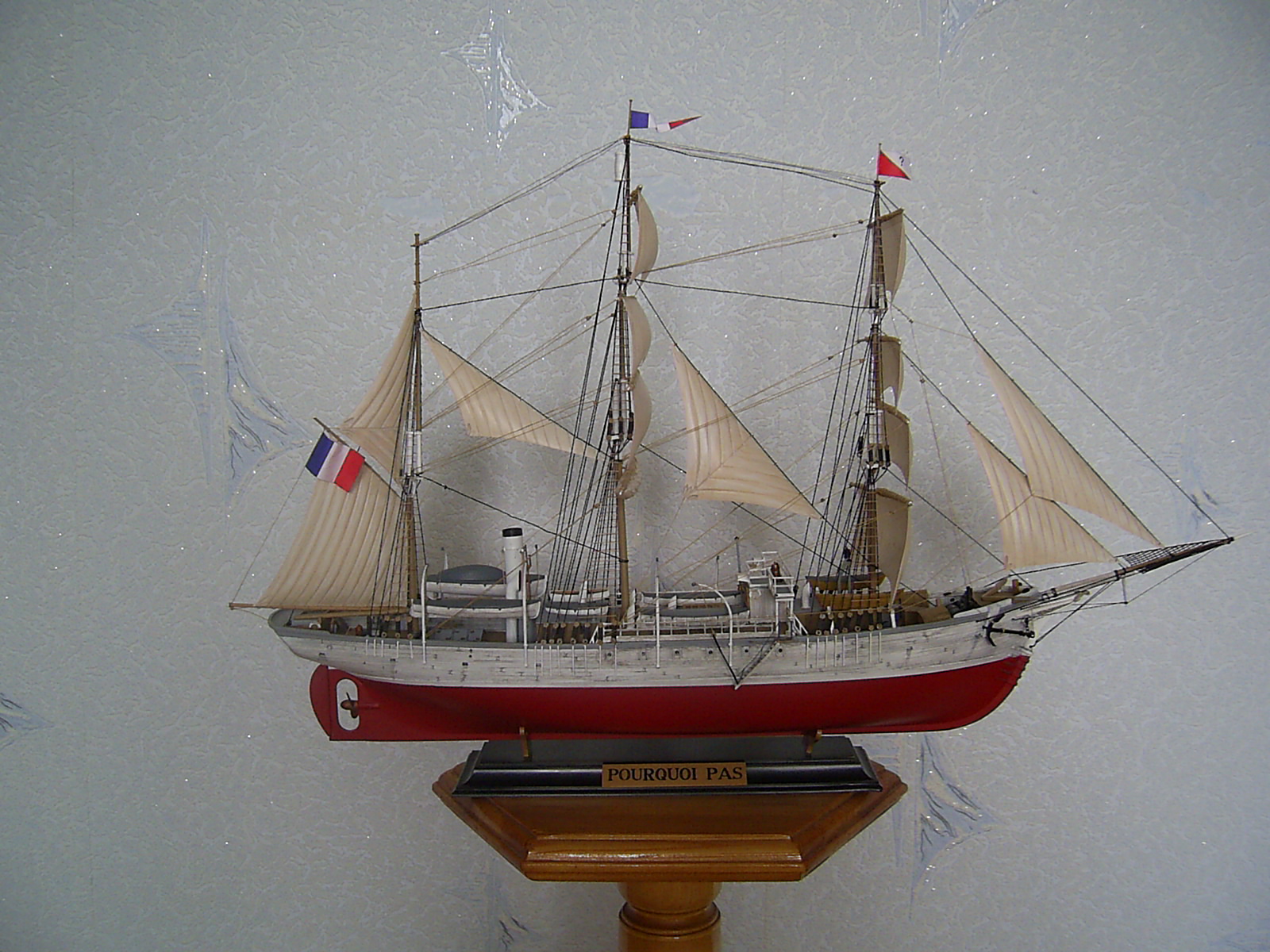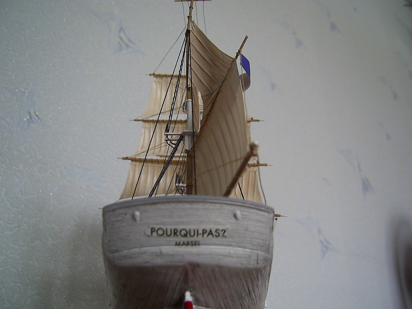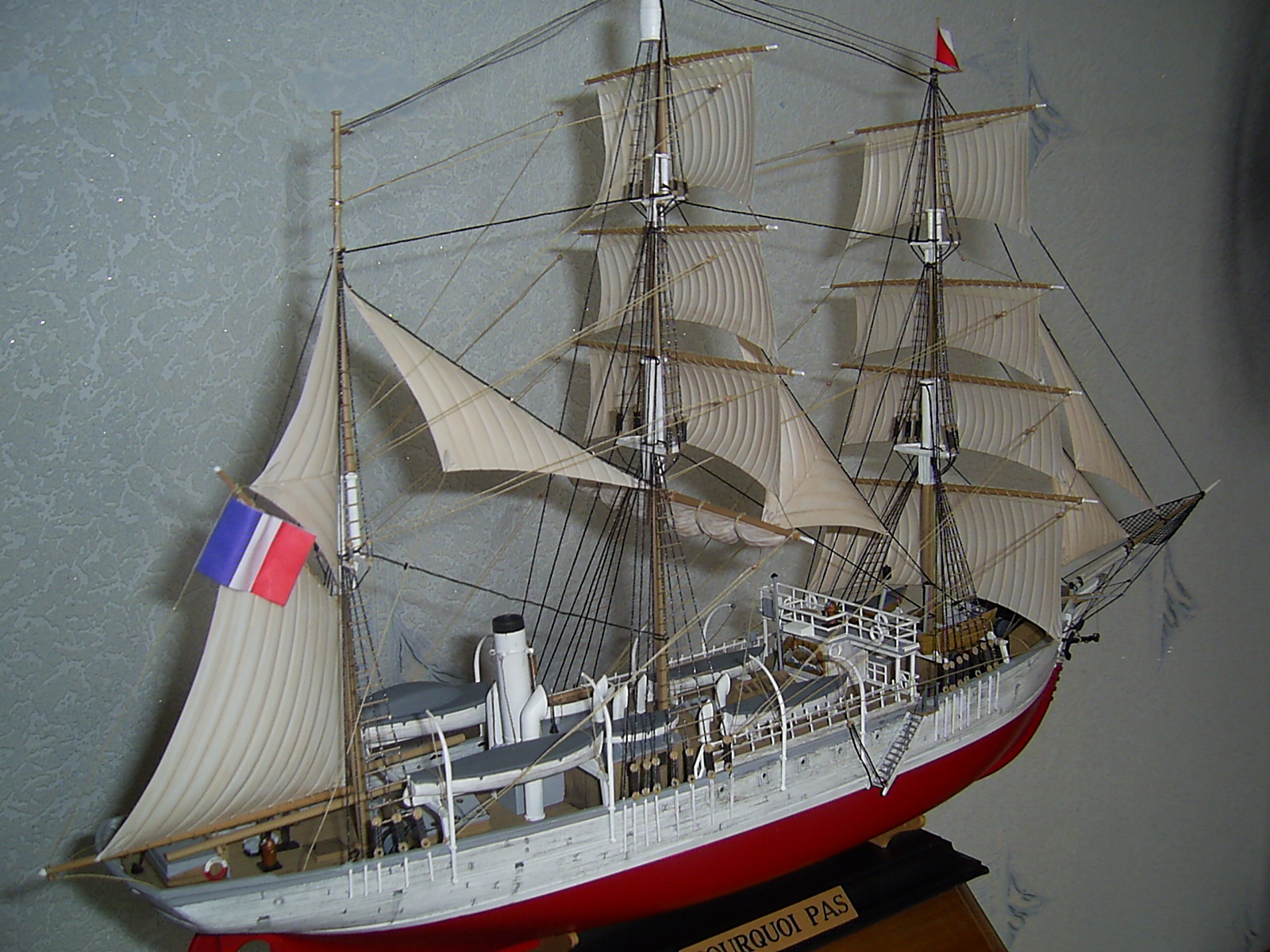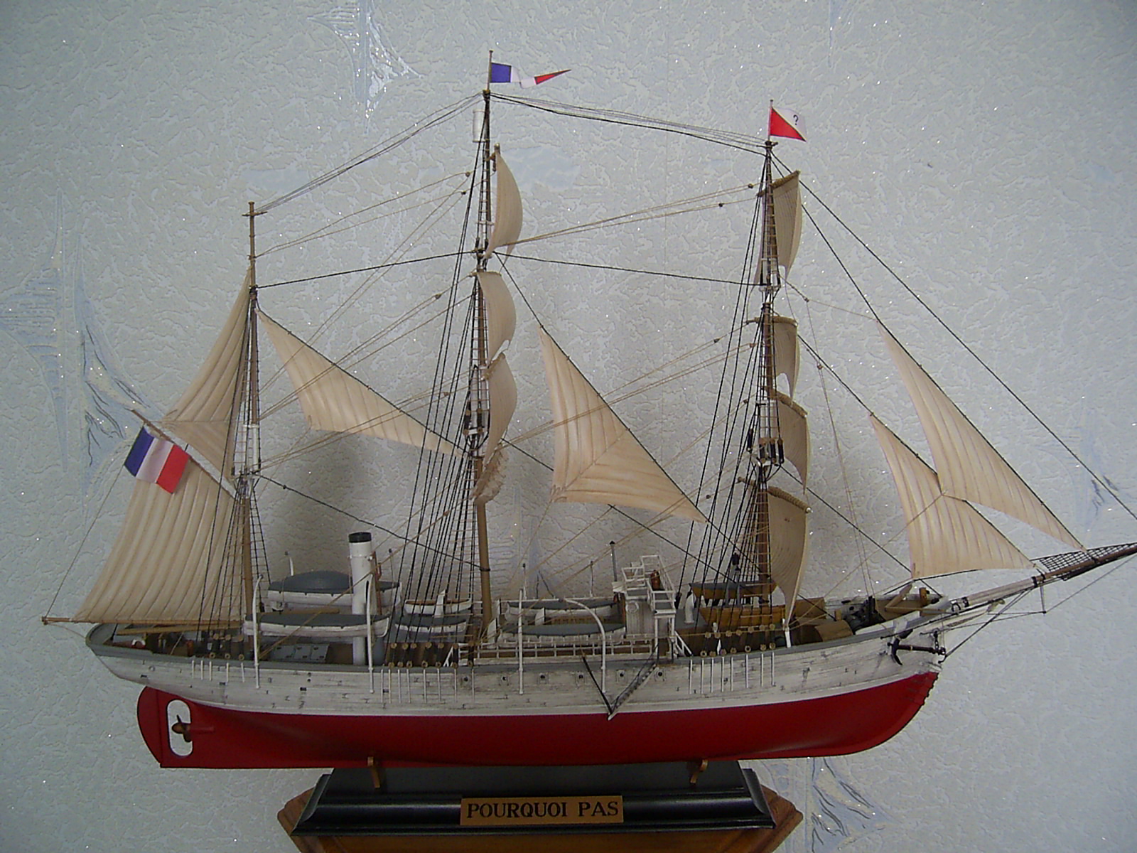Всем доброго времени суток Коллеги моделисты! Представляю Вашему вниманию экспедиционное судно "Пуркуа Па?" который зацепил своей печальной историей. На модели от себя добавил открытый трап, но позже пожалел т.к корабль идёт под парусами, корабль окрашен акриловыми красками и кистями разного размера. Корпус немного сделал потрёпанным, на сколько получилось судить Вам. В процессе стройки модель терпела крушение, но вроде восстановил.Рангоут оставил из набора кроме бушприта, о чём сто раз пожалел!